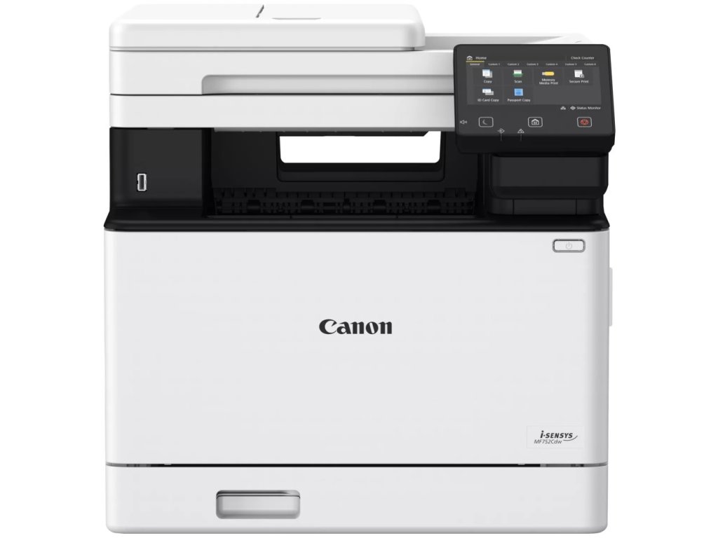 Canon i-SENSYS MF752CdwMultifunkční barevná laserová tiskárna formátu A4 nabízí rozlišení tisku 1200 x 1200 dpi při rychlosti až 33 stran za minutu černobíle i barevně. Disponuje vestavěným skenerem s rozlišením 600 x 600 dpi a rychlostí skenování až 50 stran za minutu. Vybavena je dvěma zásobníky papíru s celkovou kapacitou 300 listů. Potěší též automatický podavač dokumentů s kapacitou 50 listů a automatický duplexní tisk. Ovládání tiskárny je velmi snadné díky 5" dotykovému displeji a ovládacím prvkům na panelu. Připojení k počítači je realizováno skrze USB, ethernetový LAN port nebo bezdrátově pomocí Wi-Fi. Lze tak tisknout přímo z mobilního zařízení bez přístupu k firemní síti, odkudkoli v kanceláři. Pro rychlý tisk z médií je připraven USB host port. Předností je také skenování a tisk z a do cloudového úložiště pomocí aplikace Canon PRINT Business.