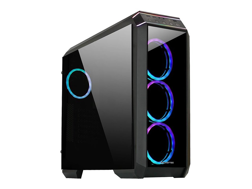 CHIEFTEC Stallion IIPrémiová herní počítačová skříň v provedení Middle tower nabízí dvě 3,5" a čtyři 2,5" pozice pro pevné a SSD disky. Na horním panelu je umístěn jeden USB-C port, dva USB 3.0 porty, jeden USB 2.0 port, sluchátkový výstup a vstup pro mikrofon. Skříň je osazena čtyřmi 120 mm ventilátory s adresovatelným RGB podsvícením, které spolu s průhlednou bočnicí a předním panelem zajišťují vytříbený design. Ve skříni je dostatek prostoru pro chladič CPU do výšky až 160 mm a grafickou kartu o délce až 430 mm. Důmyslné řešení umožňuje pohodlné umístění až 360 mm dlouhého výměníku vodního chlazení na přední straně. Skříň je dodávána bez zdroje.