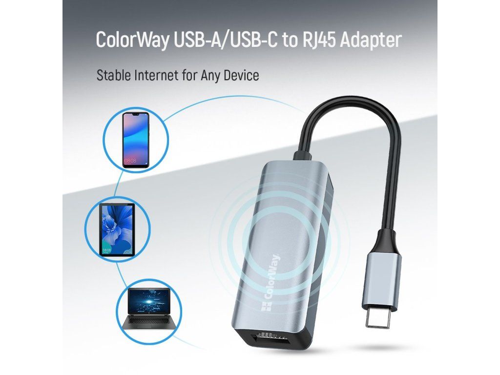 ColorWay adaptér USB/USB-C na RJ-45 18 cm