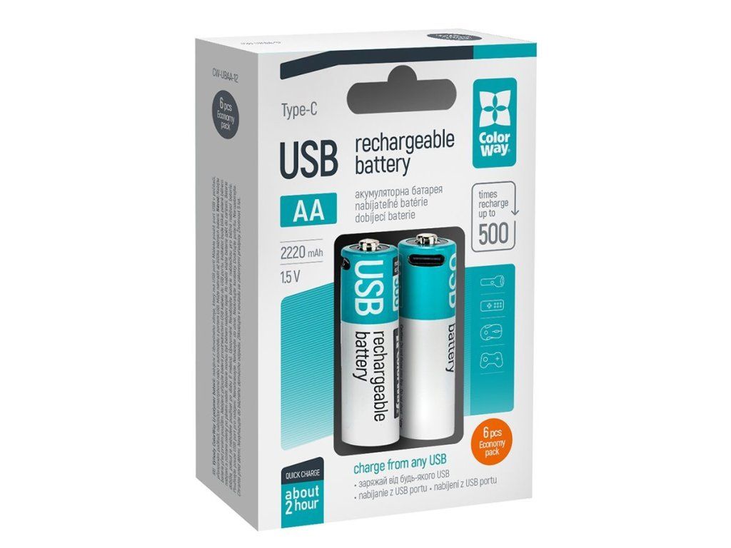 Colorway nabíjecí baterie AA 2200mAh/ USB-C/ 1.5V/ 6ks v balení