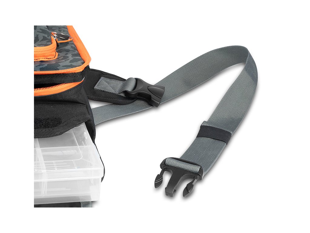 Maximálně praktická přívlačová taška s důmyslnými řešeními, která z vás udělají efektivního a pohotového lovce. Základ tašky tvoří populární model ATAK! Swift, který však tentokrát přinášíme v tmavším, stylovějším a sportovnějším designu. Díky crossbody provedení lze umístit tašku na hruď a tak usnadnit přístup k nástrahám a vybavení bez potřeby skládání tašky z ramene, čímž šetří čas na to nejpodstatnější – samotný lov. Přístup do hlavního úložného prostoru tašky umožňuje suchý zip, pomocí něhož je přístup ještě rychlejší a jednodušší. Hlavní úložný prostor ukrývá plastovou krabici s vyjímatelnými vnitřními příčkami, do které si můžete uložit vaše oblíbené nástrahy. Menší zipovatelná kapsa obsahuje blok EVA pěny se zářezy pro uložení nástrah, které budou připraveny pro okamžité použití. Pěnový blok je přichycen pomocí suchého zipu, což umožňuje jeho rychlé vyjmutí, případně výměnu. Kapsu lze otevřít do polohy pro komfortní přístup a látka našitá z obou stran kapsy zamezuje vypadnutí slaběji přichycených nástrah. Uvnitř se navíc nacházejí dvě menší kapsy ze síťoviny a jedna malá zipovatelná kapsa, kde je možné uložit dodatečnou rybářskou bižuterii. Spodní část kapsy je opatřena magnetem, který spolehlivě udrží dodatečné příslušenství na svém místě. Nejmenší zipovatelná kapsa nacházející se na vrchu tašky slouží k uložení rybářského vybavení jako například pean nebo kleště. O maximální komfort při nošení se stará polstrování na zadní straně. Jednoduché odepínání popruhu je zajištěno pomocí robustního plastového klipu. Samozřejmostí jsou kvalitní zipy s plastovými taháčky pro snadné otevírání. Výrazné barevné lemy zvyšují viditelnost tašky za nepříznivých světelných podmínek. Crossbody taška Delphin Darx ATAK! Swift je tmavší dvojče úspěšného modelu Delphin ATAK! Swift, která díky důmyslnému řešení a kvalitnímu zpracování, získala cenu Grand Prix na rybářském veletrhu For Fishing 2020 v kategorii: Rybolovná technika přívlač. Technické parametry: Rozměr tašky: 25x35x13cm Rozměr přední kapsa velká: 25x29cm Rozměr boční kapsa malá: 14x20cm Rozměr krabice: 27x18x4cm Počet přihrádek: 6-18 Možnost náhradní krabice: TBX One 275 – 1PDoplňkové parametry