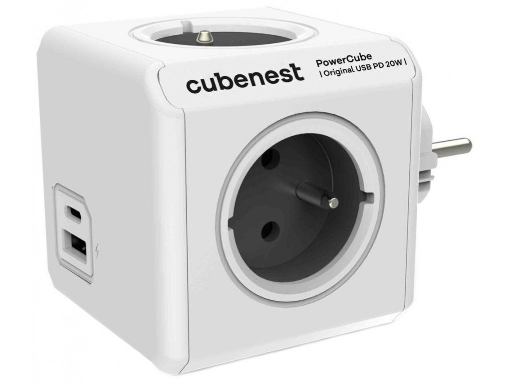 Cubenest PowerCube Original USB A+C PD 20 WCubenest PowerCube Original je unikátní kombinací čtyř zásuvek, jednoho portu USB a jednoho USB-C v kompaktním a stylovém těle pro nabíjení vašich zařízení. Technologie Power Delivery 3.0 nabízí inteligentní a rychlé nabíjení s automatickým přizpůsobením výkonu až do 20 W v režimech 5, 9 a 12 V. Promyšlené rozmístění zásuvek zajišťuje, že se nabíječky nebo objemné adaptéry navzájem neblokují. Samozřejmostí je tepelná, přepěťová, proudová a zkratová ochrana.