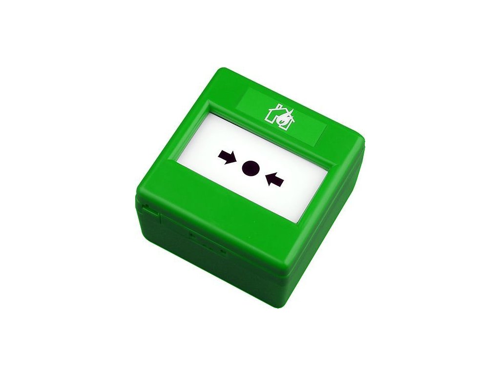 Zelený tlačítkový detektor s aktivací promáčknutím plastu. Povrchová i zápustná montáž rozšiřuje možnosti nasazení.