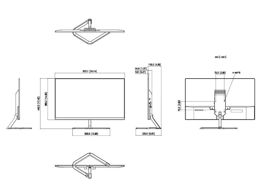 Rozměry s podstavcem: 613,1 × 442 × 223,9 mm