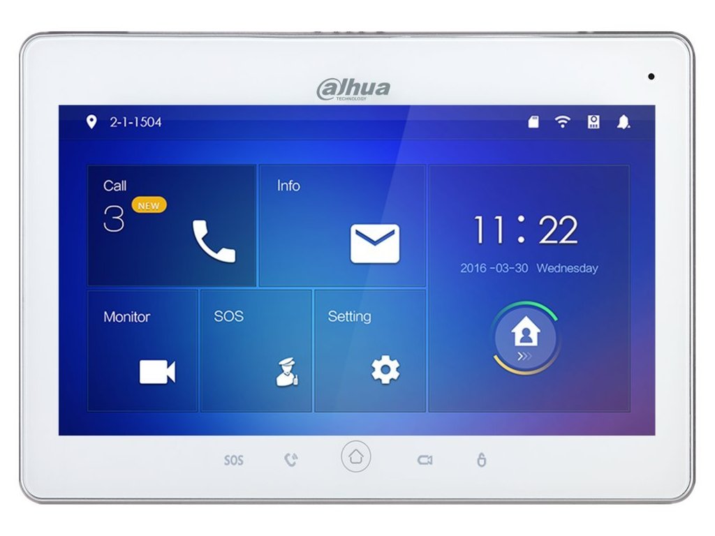 Dahua VTH5241DW-S2Komfortní barevný TFT 10" bytový monitor s dotykovou obrazovkou a dotykovými tlačítky. Rozlišení 1024 x 600, interkom, vnitřní paměť pro nahrávání obrázků a videa (microSD není součástí).