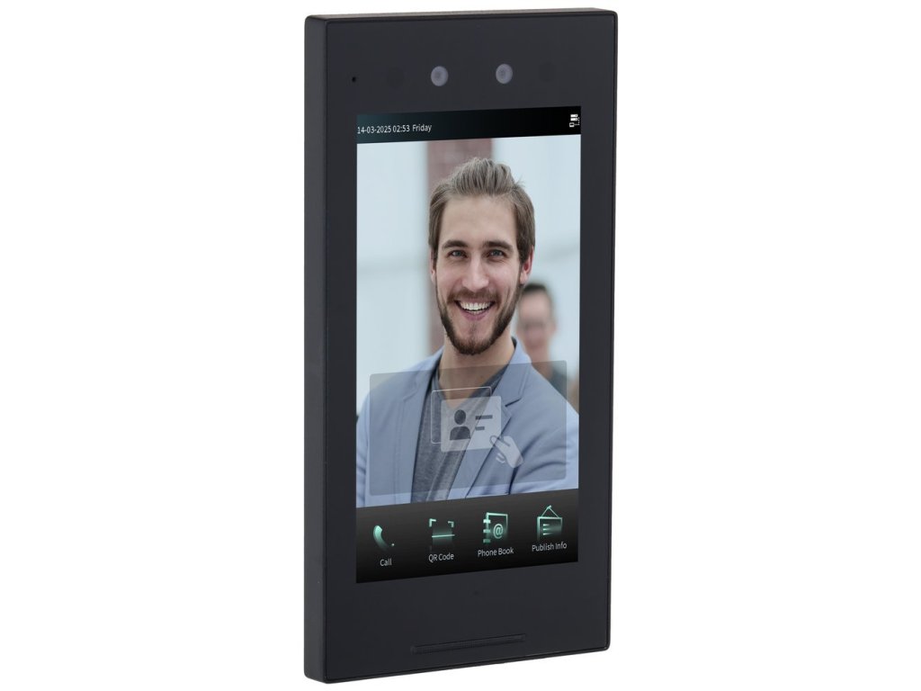Moderní dveřní stanice vybavená 7" kapacitním dotykovým displejem s rozlišením 600 × 1024 px a duální 2Mpx HD kamerou pro špičkovou kvalitu obrazu. Systém podporuje až 100 000 uživatelů a 50 000 obličejů s přesností rozpoznání 99,9 % při rychlosti 0,2 sekundy na osobu.