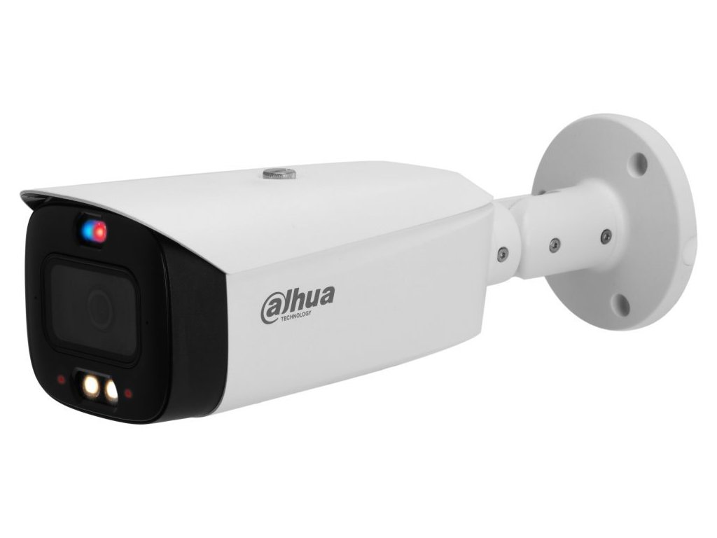 Dahua IPC-HFW3549T1-AS-PV-0280B-S5Full-color IP kamera typu bullet nabízí rozlišení snímače 5 Mpx a je tak schopna snímat video v rozlišení 2960 × 1668 při 20 fps. Disponuje pevným objektivem f = 2,8 mm s úhlem záběru horizontálně až 97°, IR i LED (Warm light) přísvitem do 30 m a aktivním odstrašením (červené + modré světlo a siréna). Optimalizace datového toku pomocí smart kodeku H.265+ a H.264+ snižuje celkové náklady na datová úložiště při zachování nejvyšší možné kvality obrazu. Kamera disponuje inteligentní videoanalýzou a spravovat ji lze skrze webový prohlížeč, nebo přes aplikaci pro chytré telefony. Samozřejmostí je přítomnost microSD slotu pro karty o velikosti až 512 GB. Kamera je vhodná pro venkovní umístění díky voděodolnosti dle certifikace IP67. Napájení DC 12 V nebo PoE (802.3af).