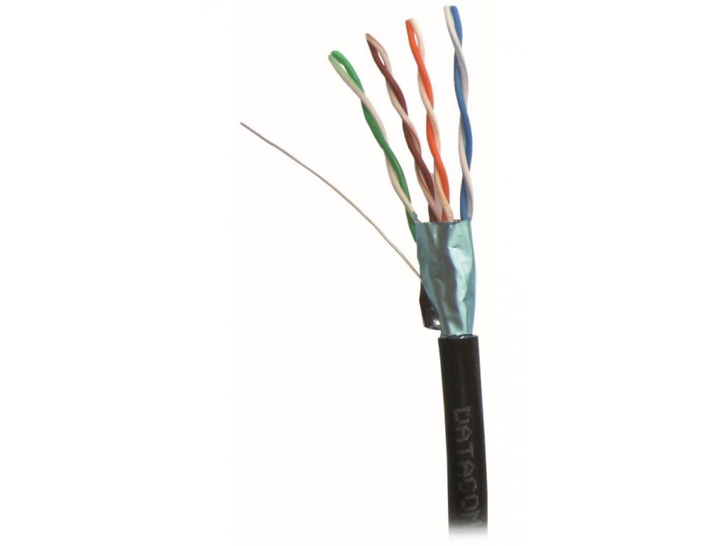DATACOM FTP Cat5e drát 100 mInstalační stíněný kabel kategorie Cat5e určený pro venkovní rozvody a instalace strukturované kabeláže. PE plášť poskytuje zvýšenou odolnost proti vlivům vnějšího prostředí.