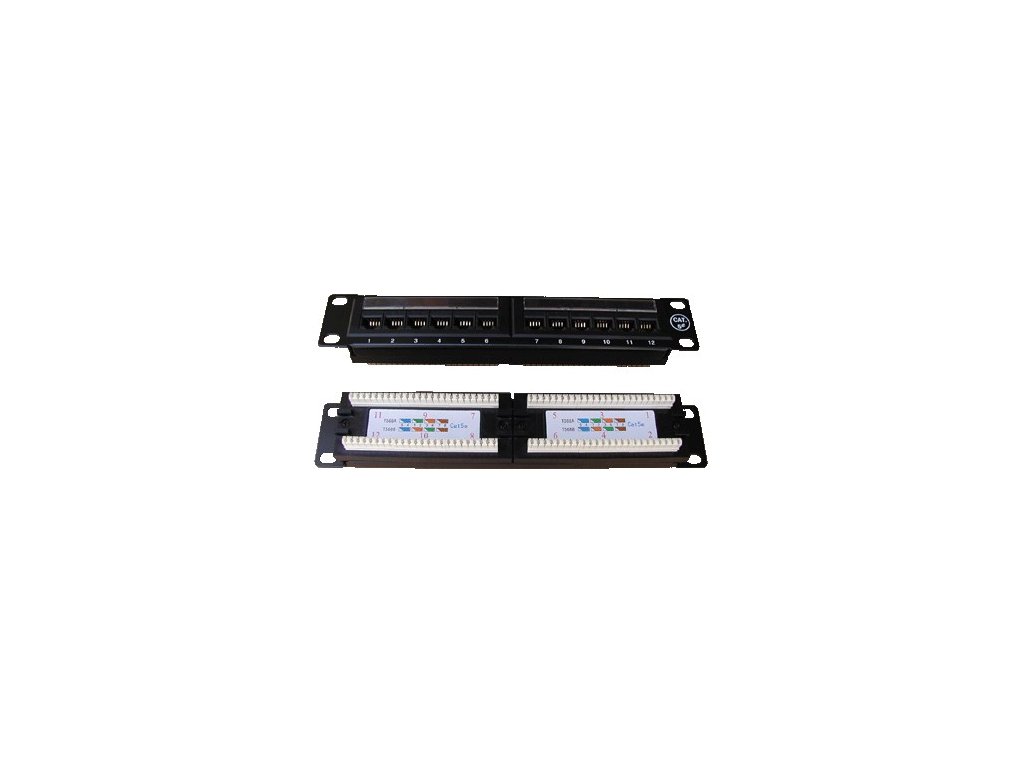 DATACOM Patch panel UTP 10" 12 port CAT5E, 2x6 pozic, 1U, zadní zářez, černý