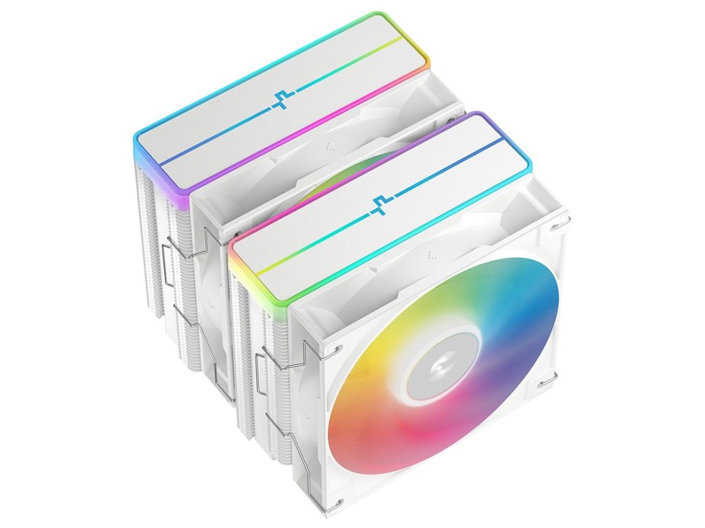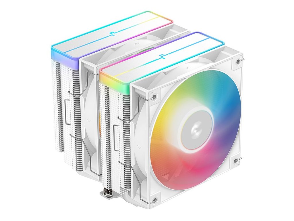 DEEPCOOL AG620 WH ARGB V2Chladič pro procesory Intel i AMD je vybaven šesti heatpipe a dvěma 120 mm ventilátory s ARGB podsvícením a PWM regulací. K připojení slouží 4pin PWM konektor a 3pin ARGB konektor.