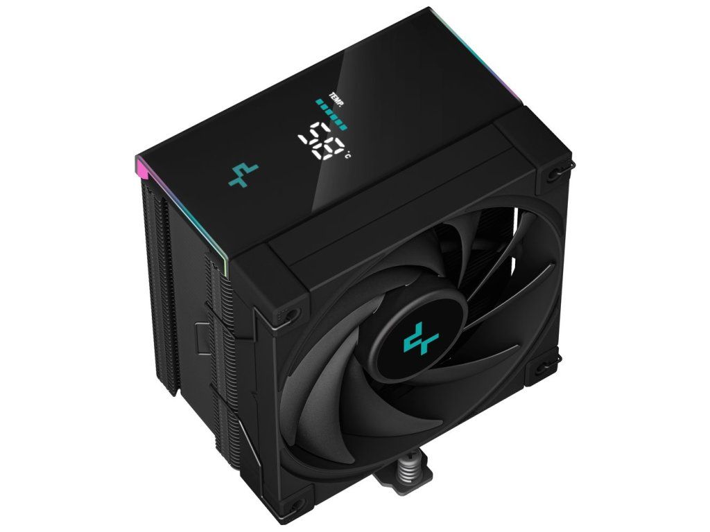 DEEPCOOL AK500S DigitalChladič pro procesory Intel i AMD je vybaven pěti heatpipe a 120 mm ventilátorem s PWM regulací. Předností chladiče je praktický digitální displej, který zobrazuje teplotu a využití procesoru v reálném čase. Samozřejmostí je upozornění, pokud je teplota příliš vysoká. K připojení slouží 4pin PWM, 3pin ARGB a 9pin USB konektor.