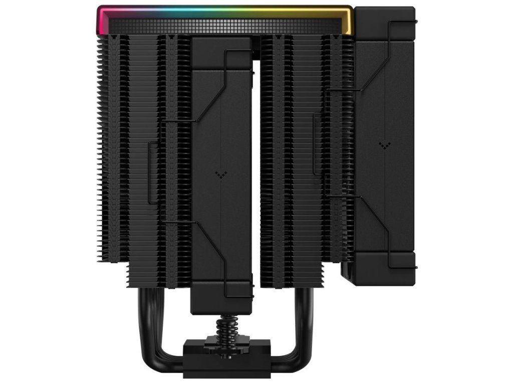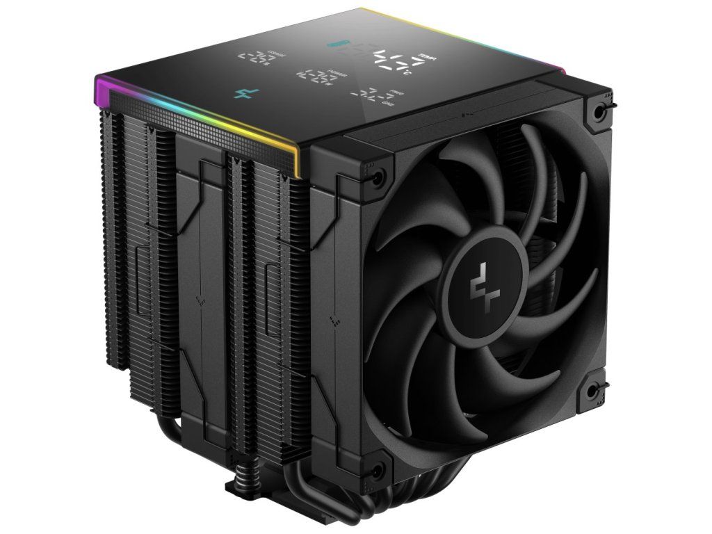 DEEPCOOL AK620 Digital ProChladič pro procesory Intel i AMD je vybaven šesti heatpipe a dvěma 120mm ventilátory s PWM regulací. Předností chladiče je ARGB podsvícení a praktický digitální displej, který zobrazuje teplotu, využití, spotřebu a frekvenci procesoru v reálném čase. Samozřejmostí je upozornění, pokud je teplota příliš vysoká. K připojení slouží 4pin PWM, 3pin ARGB a 9pin USB konektor.