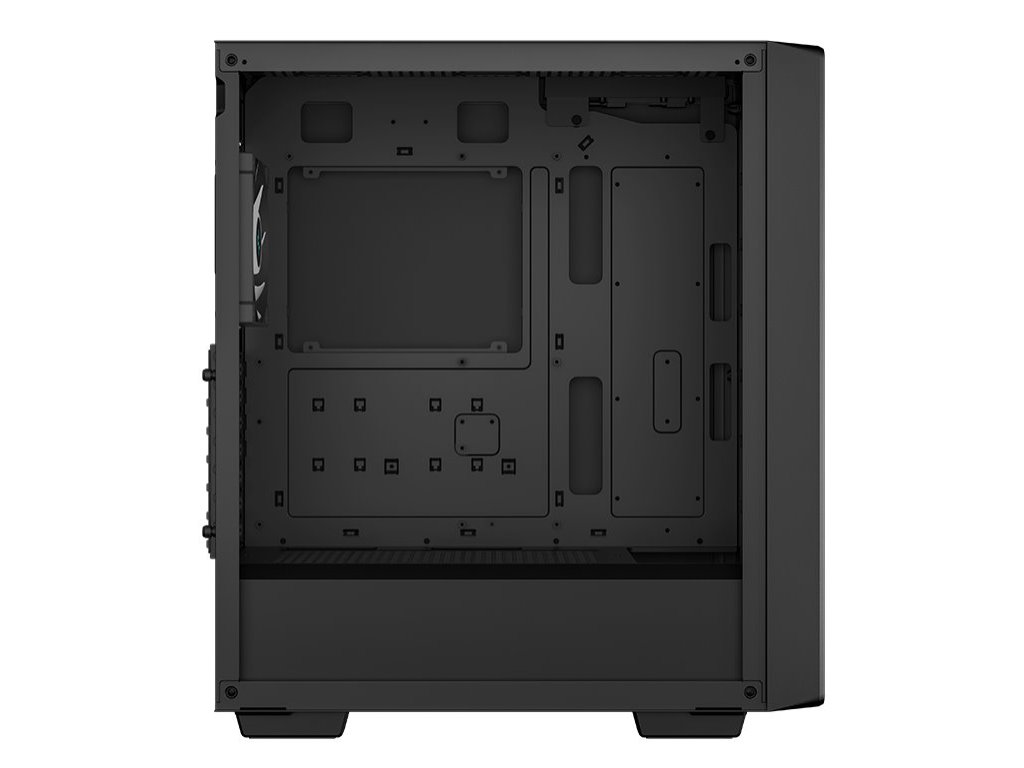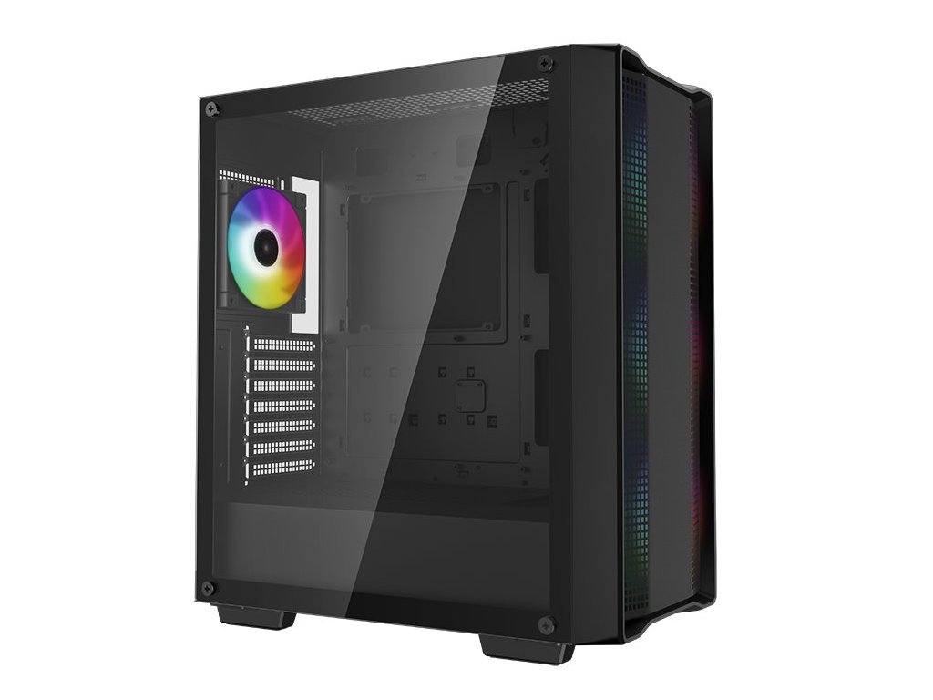 DEEPCOOL CC560 ARGB V2Skříň formátu Middle Tower s průhlednou bočnicí nabízí dvě 2,5" pozice pro SSD disky a dvě 3,5" pozice pro pevné disky. Na horním panelu se nachází jeden USB 3.0 port, jeden USB 2.0 port a kombinovaný port sluchátek a mikrofonu. Skříň je osazena celkem čtyřmi ventilátory s ARGB podsvícením o velikosti 120 mm. Důmyslné řešení umožňuje pohodlné umístění až 360 mm dlouhého výměníku vodního chlazení na přední straně. Ve skříni je dostatek prostoru pro chladič CPU do výšky až 165 mm a grafickou kartu o délce 370 mm. Dodávána je bez zdroje. Součástí je také magnetický prachový filtr na horním panelu.