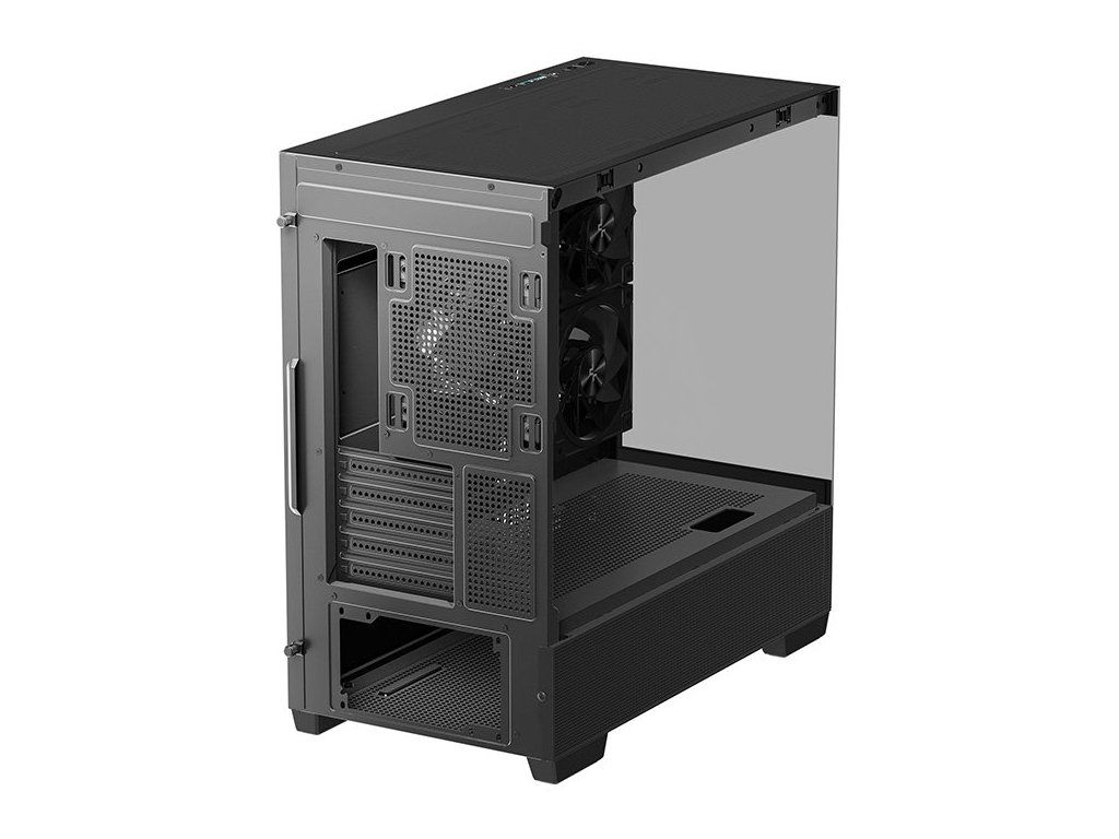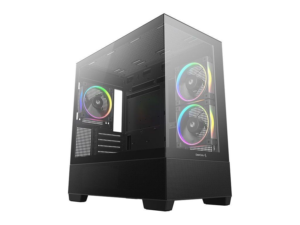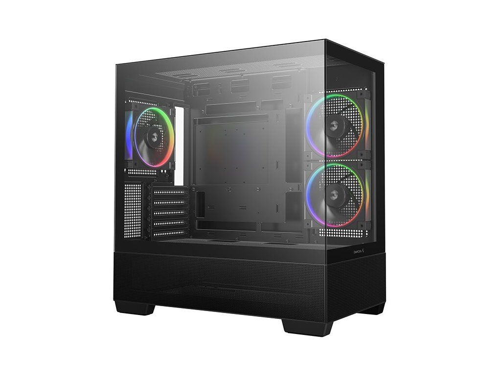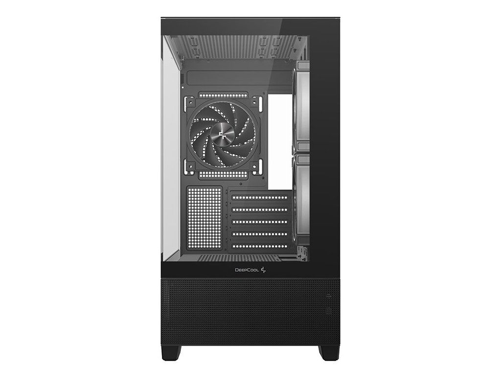 Skříň DEEPCOOL CG380 3F nabízí kompaktní rozměry 437 × 235 × 451 mm s plně proskleným panelem pro efektní prezentaci hardwaru. Spodní komora s perforovaným krytem zajišťuje optimální přívod vzduchu k grafické kartě a zdroji, zatímco podpora reverse connector Micro-ATX základních desek umožňuje skrýt kabely pro čistý vzhled sestavy.