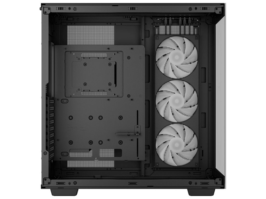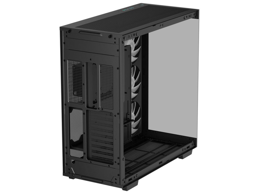 DEEPCOOL CH780 ARGBSkříň formátu Middle Tower s průhlednou bočnicí a průhledným předním panelem nabízí dvě 2,5" pozice pro SSD disky a dvě 3,5" pozice pro pevné disky. Na horním panelu se nachází čtyři USB 3.0 porty, jeden USB-C port a kombinovaný port sluchátek a mikrofonu. Skříň je osazena třemi 140mm ventilátory s ARGB podsvícením, spojenými do jedné 420mm jednotky. Trojice ventilátorů tak vyžaduje zapojení pouze jediné sady kabelů PWM a ARGB. Důmyslné řešení umožňuje pohodlné umístění až 420 mm dlouhého výměníku vodního chlazení na vrchní, boční či dolní straně. Ve skříni je dostatek prostoru pro chladič CPU do výšky až 132 mm a grafickou kartu o délce 480 mm. Dodávána je bez zdroje. Součástí je také sada prachových filtrů a držák grafické karty.