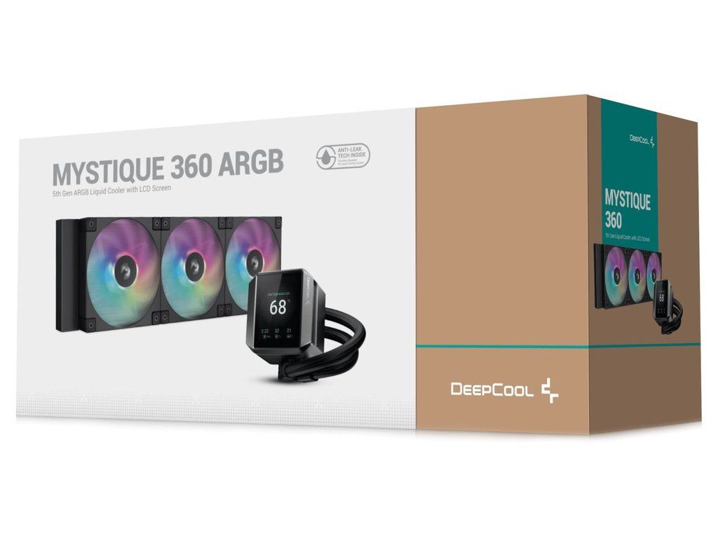 DEEPCOOL MYSTIQUE 360 ARGBVodní chladič určený pro chlazení široké škály procesorů. Vyznačuje se vysokou kvalitou, výkonem a spolehlivostí. Disponuje třemi 120 mm velkými ventilátory s ARGB podsvícením. Odolné opletené hadice jsou dlouhé 410 mm a díky dostatečně širokému průměru zaručují plynulý průtok chladicí kapaliny. Chladicí blok je vybaven konfigurovatelným 2,8" LCD displejem s rozlišením 640 × 480 px. Oživte svůj kreativní styl pomocí vlastních obrázků a animovaných gifů. Orientace obrazovky se navíc automaticky přizpůsobí díky vestavěnému gyroskopickému senzoru.