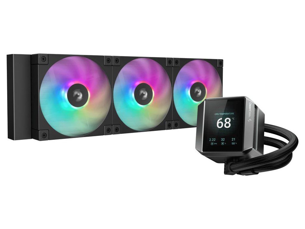 DEEPCOOL vodní chladič MYSTIQUE 360 ARGB / 3x120mm ARGB fan / dig. displej / Intel i AMD / černý