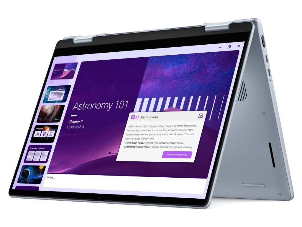 Tento model notebooku Dell 14 Plus 2 v 1 je vybaven integrovanou jednotkou Intel AI Boost NPU, která funguje jako výpočetní modul pro procesy umělé inteligence a zprostředkuje vám AI funkce Copilot+ PC. Díky tomu se můžete pustit například do generování obsahu, ať už v obrazové, nebo textové formě, efektivně získávat rozmanité informace, tvořit tabulky, prezentace a další obsah. Skvěle se uplatní například při multitaskingu.