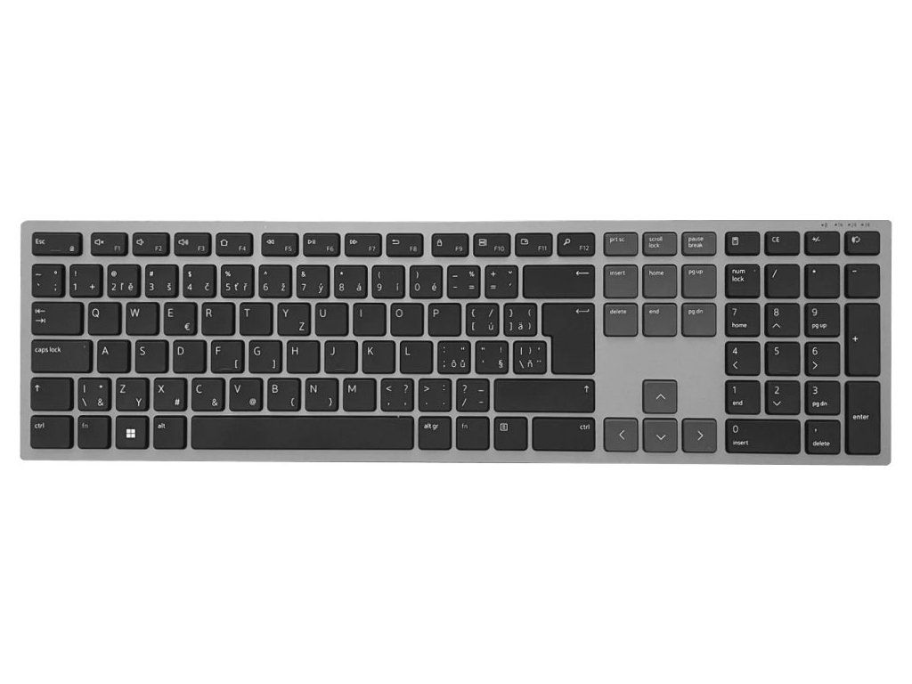 Stylová plnohodnotná bezdrátová klávesnice Dell podporuje připojení až ke třem zařízením v jeden moment. Napájení zajišťují dvě AAA baterie, které zaručí výdrž až 36 měsíců. Připojení je realizováno bezdrátově skrze Bluetooth či miniaturní USB přijímač a technologii 2,4 GHz.