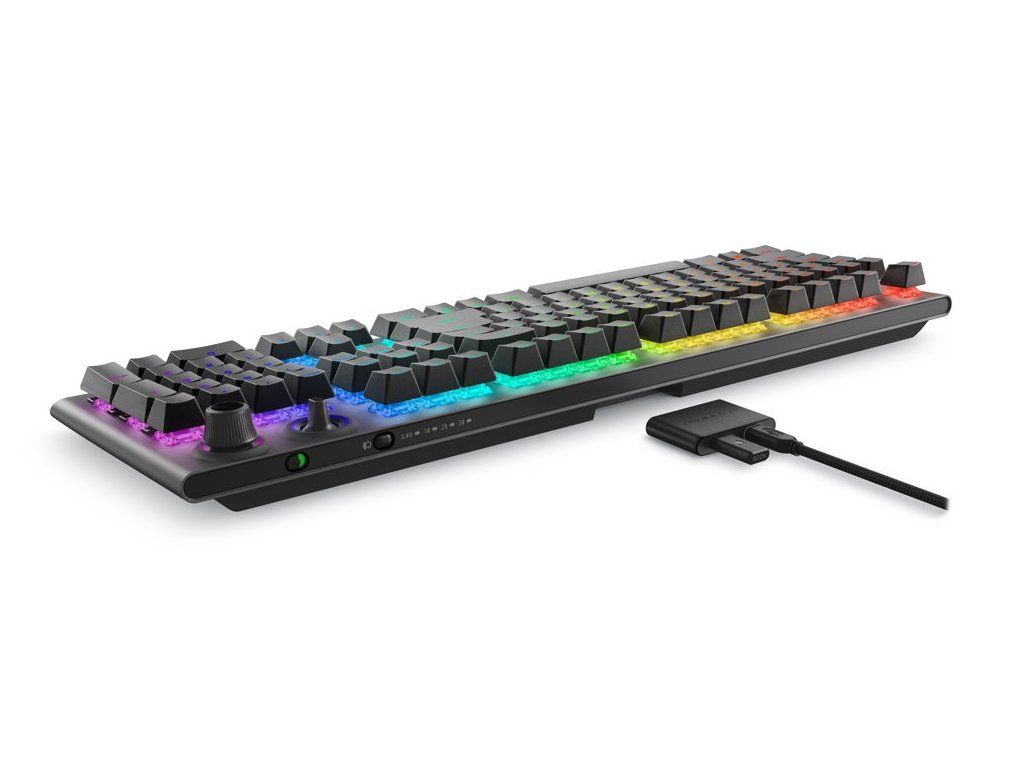 Bezdrátová mechanická herní klávesnice je vybavena spínači Cherry MX Red s perfektní odezvou a životností až 100 milionů stisků. Programovatelné klávesy umožňují klávesnici individualizovat přesně podle potřeb hráče a hrané hry. Zajisté potěší také nastavitelné podsvícení AlienFX ve škále až 16,8 milionů barev. Samozřejmě nechybí ani funkce Anti-Ghosting a N-Key rollover. Připojení k počítači lze realizovat jak bezdrátově skrze Bluetooth či miniaturní USB přijímač a technologii 2,4 GHz, tak i drátově pomocí USB kabelu, který slouží zároveň pro nabíjení.