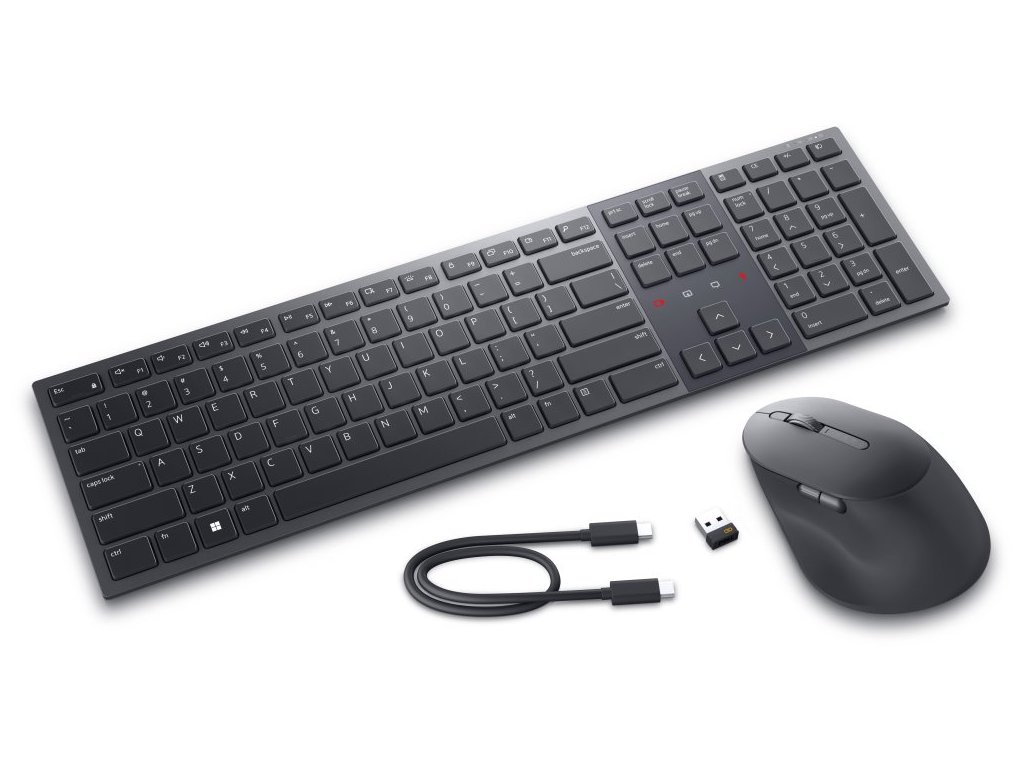 Dell KM900S bezdrátovou klávesnicí a myší můžete jednoduše zvýšit váš každodenní výkon. Optická myš s rozlišením až 8 000 DPI nabízí snadné ovládání prakticky na každém povrchu. Stylová plnohodnotná klávesnice podporuje připojení až ke třem zařízením v jeden moment. Napájení zajišťují integrované baterie, které se dobíjí pomocí přiloženého USB-C kabelu a zaručí výdrž klávesnice až 20 dnů a výdrž myši až 3 měsíce. Připojení je realizováno bezdrátově skrze Bluetooth či miniaturní USB přijímač a technologii 2,4 GHz.