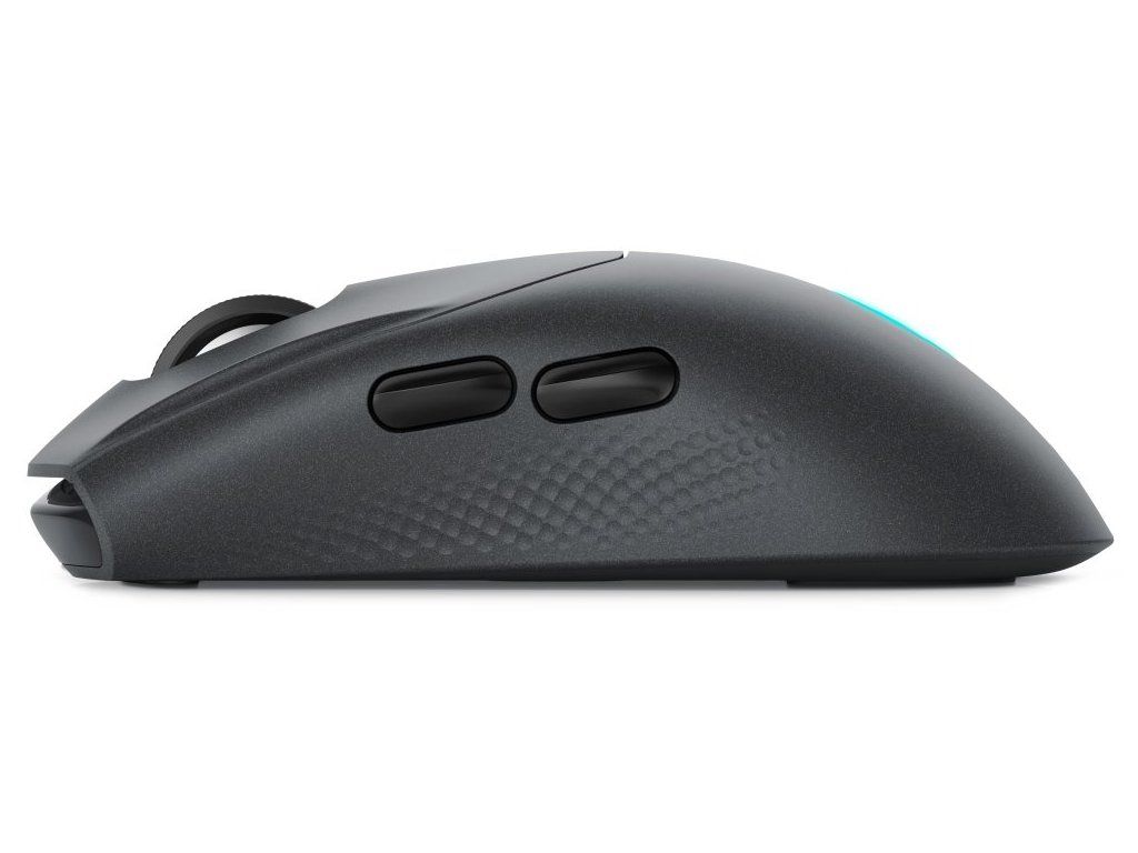 Bezdrátová herní myš nabízí kvalitní spínače s životností až 70 milionů kliknutí, optický senzor s rozlišením až 26000 DPI a nastavitelné podsvícení AlienFX ve škále až 16,8 milionů barev. Pomocí přepínače na spodní straně si můžete vybrat, zda chcete myš připojit skrze Bluetooth či využít USB-C adaptér a připojení 2,4 GHz. Napájení zajišťuje vestavěná Li-Pol baterie s kapacitou 500 mAh, která při plném nabití udrží myš v chodu až 420 hodin. Rychlé nabití po dobu pěti minut zajistí energii na 20 hodin používání. Výhodou je také samostatný přepínač pro zapnutí či vypnutí myši, které zajistí delší životnost baterie. Myš je možné používat i při dobíjení baterie díky přiloženému USB kabelu.