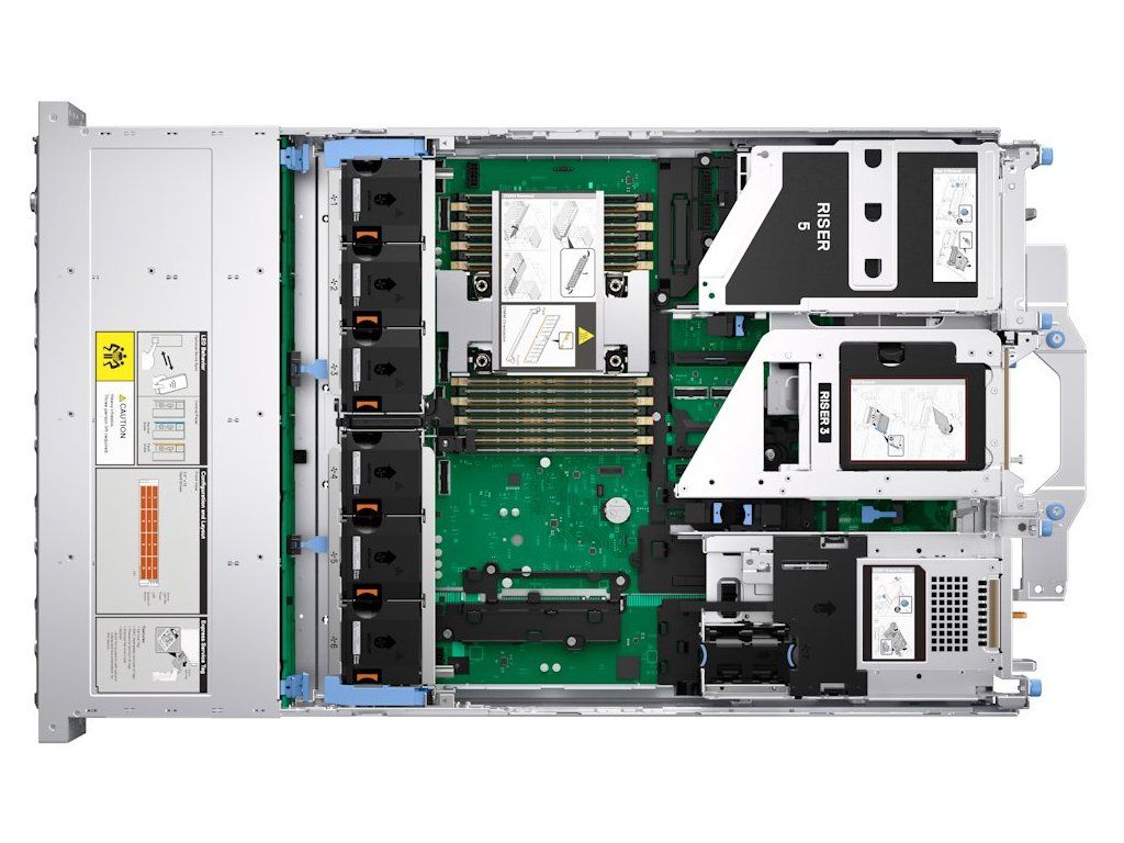 Konfigurace podporuje až 16× 2,5" disky ve formátu SAS4/SATA s možností hot-swap výměny. Riser Config 5 nabízí rozšiřitelnost prostřednictvím PCIe slotů včetně podpory Gen5 pro nejvyšší přenosové rychlosti a OCP 3.0 pro síťové karty.