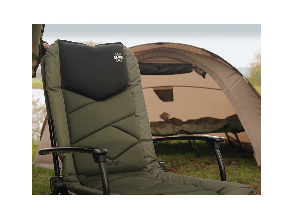 Komfortní a zároveň robustní křeslo je vylepšením osvědčeného a oblíbeného modelu Delphin Grand. Toto kvalitní křeslo je vybaveno pohodlnou, vzorově prošívanou matrací. Okrajové části matrace jsou potaženy textilií 600D, která zvyšuje odolnost vůči mechanickému opotřebení, a tím prodlužuje životnost matrace. Tento materiál se vyznačuje dobrou odpudivostí vody, čímž se snižuje nasákavost podkladového materiálu. V horní části opěradla se nachází designová hlavová opěrka, která je doplněna logem produktu. Hlavová opěrka je vyplněna paměťovou pěnou tzv. memory foam, která dodává nebývalý stupeň relaxu. Polohování opěradla lze provádět pomocí kloubového mechanismu nacházejícího se na stranách křesla. Robustní svařovaná ocelová konstrukce zajišťuje pevnost a šikmý rozestup nožiček zajišťuje vysokou stabilitu, což ocení zejména objemnější kapraři. I přes svoji pevnou konstrukci je křeslo poměrně lehké. Pro snadný transport jsme křeslo vybavili odepínatelným popruhem, který si lze přehodit přes rameno, a tím uvolňuje ruce pro přenos ostatního rybářského vybavení. Stejně tak je křeslo vybaveno plastovým klipem, který slouží k fixaci polohy křesla během přenosu a předchází nežádoucímu otevírání. Nohy křesla jsou výškově nastavitelné pomocí pákového mechanismu, aby bylo umožněno přizpůsobit křeslo nerovnoměrnému terénu při lovu v náročných podmínkách. Zajištění polohy křesla zajišťují i pevné otočné patky, jejichž velká plocha zabraňuje zaboření nohou do rozmočeného terénu u vody. Delphin GRAND X je křeslem, které ocení každý kaprař dbající na komfort a spolehlivost během dlouhých vycházek za kapry. Technické parametry: Rozměry sedáku: 58x50cm Výška zádové opěrky: 65cm Výška sedáku: 35-45cm Hmotnost: 7,5 kg Transportní rozměry: 80x65x20cm Nosnost: 150kg Nosnost křesla/lehátka je velmi komplexní otázka. Odpověď je ovlivněna mnoha faktory, jako například rovinatost a stabilita podkladu, na kterém křeslo/lehátko rozkládáme a také samotné fyzické parametry člověka, který do něj sedá. Statické/nehybné zatížení bývá vždy vyšší, než namáhání dynamické (při sedání uživatele, z jaké výšky a jak plynule si sedá). Zjednodušeně lze uvést, že v ideálním případě je nosnost křesla/lehátka GrandX přibližně 150 kg.Doplňkové parametry