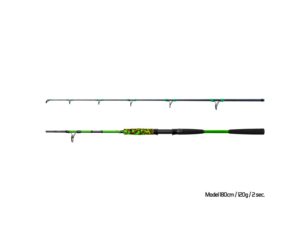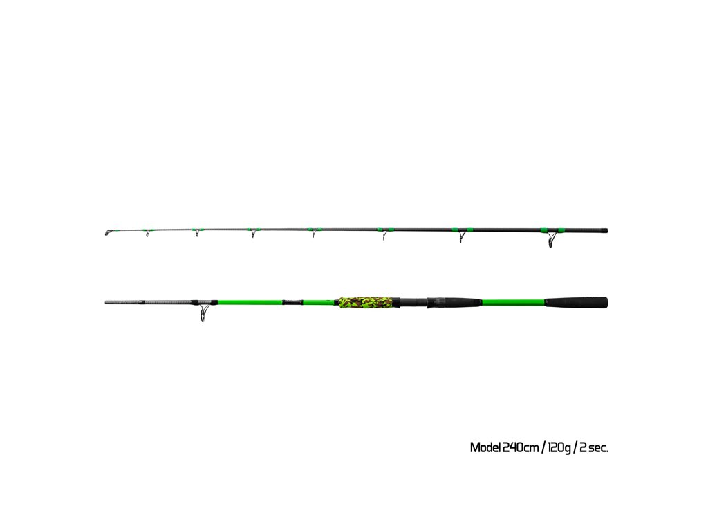Nová generace prutu HYPERIO je zaměřena na aktivní lov sumců těžkou přívlačí ze břehu nebo z člunu. Novinka vás na první pohled zaujme svým novým a propracovaným designem. Gramáž poskočila na 120g vyztužením blanku a díky technickým inovacím přináší rovnoměrné rozdělení síly. HYPERIO představuje lehký ale silný prut, určený pro vrhání zátěží kolem 120g. Nedělá mu problém sladkovodní, ani mořský rybolov. Postaven byl totiž na vyhrávání soubojů s dravými rybami. Už při navrhování jsme dbali na výjimečně silný blank se zpevňujícím karbonovým opletem PowerWrap, který je velmi pevný a výborně pracuje při nahazování či zdolávání. Zesílená očka prutu jsou vyvázaná s vysokým důrazem na celkovou odolnost a vysoké namáhání. Výplň oček si výborně poradí jak s vlascem, tak i se šňůrou. Model: 180cm / 120g Počet dílů: 2 Průměr blanku nad rukojetí: 10,44mm Počet oček: 7 Transportní délka: 95cm Hmotnost: 196g Rukojeť: dělená, EVA pěna Délka rukojeti (od spodní části prutu po střed sedla): 43,5cm Model: 210cm / 120g Počet dílů: 2 Průměr blanku nad rukojetí: 11,50mm Počet oček: 8 Transportní délka: 111cm Hmotnost: 221g Rukojeť: dělená, EVA pěna Délka rukojeti (od spodní části prutu po střed sedla): 46,5cm Model: 240cm / 120g Počet dílů: 2 Průměr blanku nad rukojetí: 12,87mm Počet oček: 9 Transportní délka: 125cm Hmotnost: 244g Rukojeť: dělená, EVA pěna Délka rukojeti (od spodní části prutu po střed sedla): 48,5cm Model: 270cm / 120g Počet dílů: 2 Průměr blanku nad rukojetí: 13,40mm Počet oček: 10 Transportní délka: 141cm Hmotnost: 274g Rukojeť: dělená, EVA pěna Délka rukojeti (od spodní části prutu po střed sedla): 50,5cmDoplňkové parametry