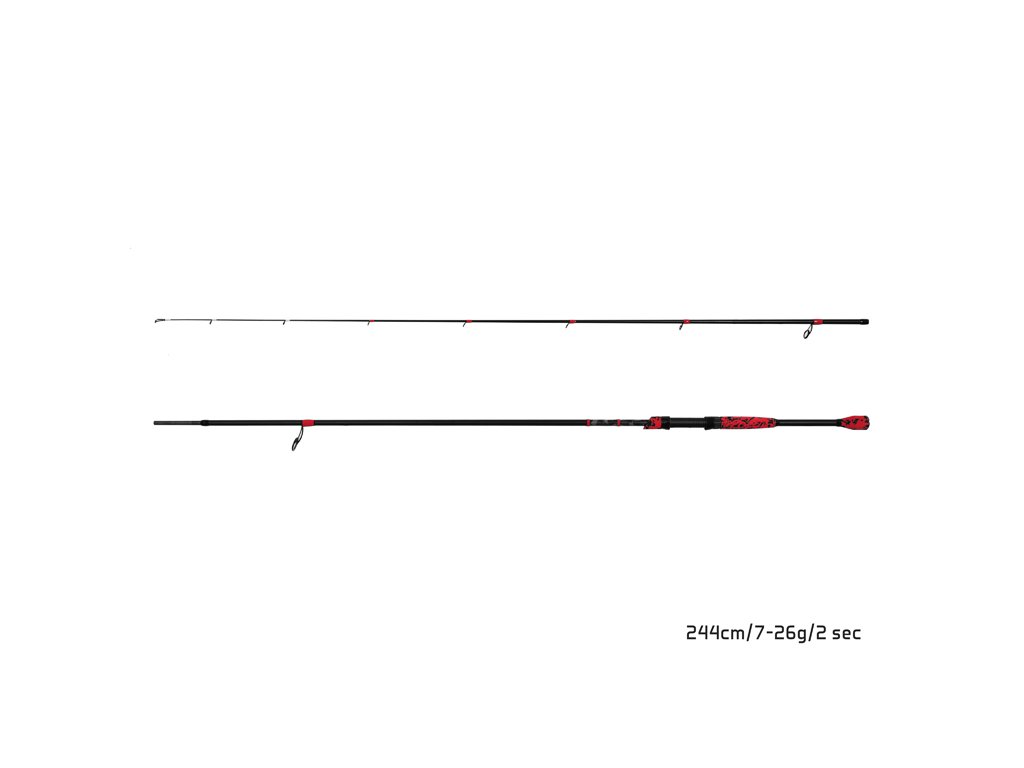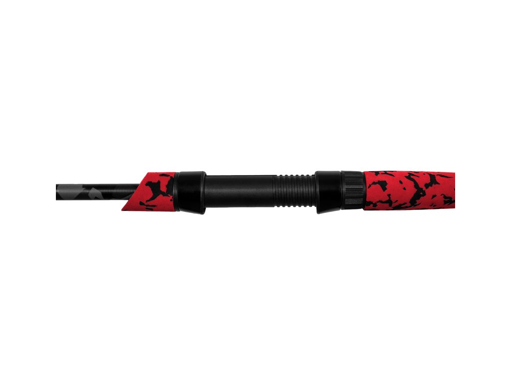 Rychlý, lehký, designově odlišný od všech ostatních prutů. Přesně to definuje přívlačový prut Delphin RedCODE. Série RedCODE přináší na trh novou dimenzi přívlačových prutů. Pruty výborně sedí v ruce díky netypickému, sezanému tvarování rukojeti z EVA pěny, které vám umožní přímý kontakt s blankem prutu. Dělená rukojeť provedená v červeno-černé maskáčové kombinaci výrazně napomáhá k velmi dobrému vyvážení prutů RedCODE i během celodenního rybaření. Kvalitní 24T karbon, který byl použit na celé délce blanku výborně doplňuje semiparabolickou akci prutu a záběr se tak okamžitě přenáší do rukojeti, což dovoluje okamžitou reakci a rychlý zásek. Vyvázání posledních tří oček bílou barvou vám usnadní rozeznat i ten nejopatrnější záběr od nenasytných dravců. Přesně určená velikost oček s výplní SiC a jejich rozložení umožňují dokonale přesné nahazování nástrahy do lovného místa. Technické parametry: Model: 183cm/0.5-5g Počet dílů: 2 Průměr blanku nad rukojetí: 7,0mm Počet oček: 8 Transportní délka: 94,5cm Hmotnost: 82g Rukojeť: dělená, EVA pěna Délka rukojeti (od spodní části prutu po střed sedla): 25,5cm Model: 213cm/2-7g Počet dílů: 2 Průměr blanku nad rukojetí: 8,7mm Počet oček: 9 Transportní délka: 109,5cm Hmotnost: 84g Rukojeť: dělená, EVA pěna Délka rukojeti (od spodní části prutu po střed sedla): 28,5cm Model: 228cm/3-18g Počet dílů: 2 Průměr blanku nad rukojetí: 9,2mm Počet oček: 9 Transportní délka: 117,5cm Hmotnost: 102g Rukojeť: dělená, EVA pěna Délka rukojeti (od spodní části prutu po střed sedla): 29,5cm Model: 244cm/7-26g Počet dílů: 2 Průměr blanku nad rukojetí: 11,5mm Počet oček: 9 Transportní délka: 126cm Hmotnost: 128g Rukojeť: dělená, EVA pěna Délka rukojeti (od spodní části prutu po střed sedla): 32cmDoplňkové parametry
