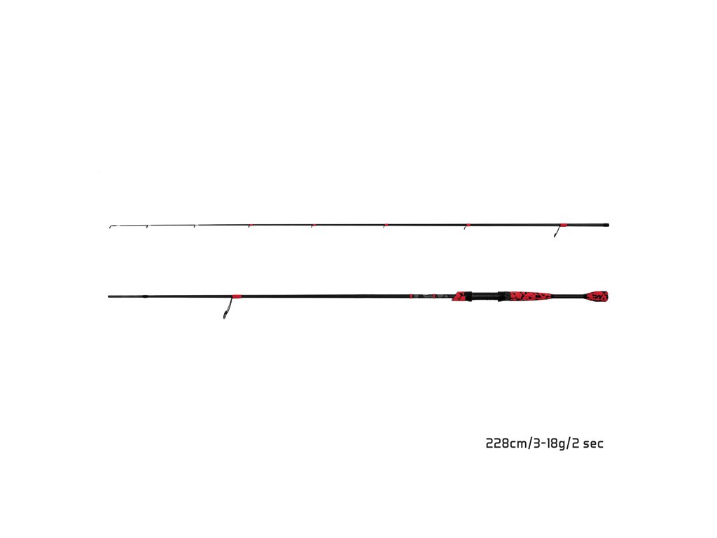 Rychlý, lehký, designově odlišný od všech ostatních prutů. Přesně to definuje přívlačový prut Delphin RedCODE. Série RedCODE přináší na trh novou dimenzi přívlačových prutů. Pruty výborně sedí v ruce díky netypickému, sezanému tvarování rukojeti z EVA pěny, které vám umožní přímý kontakt s blankem prutu. Dělená rukojeť provedená v červeno-černé maskáčové kombinaci výrazně napomáhá k velmi dobrému vyvážení prutů RedCODE i během celodenního rybaření. Kvalitní 24T karbon, který byl použit na celé délce blanku výborně doplňuje semiparabolickou akci prutu a záběr se tak okamžitě přenáší do rukojeti, což dovoluje okamžitou reakci a rychlý zásek. Vyvázání posledních tří oček bílou barvou vám usnadní rozeznat i ten nejopatrnější záběr od nenasytných dravců. Přesně určená velikost oček s výplní SiC a jejich rozložení umožňují dokonale přesné nahazování nástrahy do lovného místa. Technické parametry: Model: 183cm/0.5-5g Počet dílů: 2 Průměr blanku nad rukojetí: 7,0mm Počet oček: 8 Transportní délka: 94,5cm Hmotnost: 82g Rukojeť: dělená, EVA pěna Délka rukojeti (od spodní části prutu po střed sedla): 25,5cm Model: 213cm/2-7g Počet dílů: 2 Průměr blanku nad rukojetí: 8,7mm Počet oček: 9 Transportní délka: 109,5cm Hmotnost: 84g Rukojeť: dělená, EVA pěna Délka rukojeti (od spodní části prutu po střed sedla): 28,5cm Model: 228cm/3-18g Počet dílů: 2 Průměr blanku nad rukojetí: 9,2mm Počet oček: 9 Transportní délka: 117,5cm Hmotnost: 102g Rukojeť: dělená, EVA pěna Délka rukojeti (od spodní části prutu po střed sedla): 29,5cm Model: 244cm/7-26g Počet dílů: 2 Průměr blanku nad rukojetí: 11,5mm Počet oček: 9 Transportní délka: 126cm Hmotnost: 128g Rukojeť: dělená, EVA pěna Délka rukojeti (od spodní části prutu po střed sedla): 32cmDoplňkové parametry
