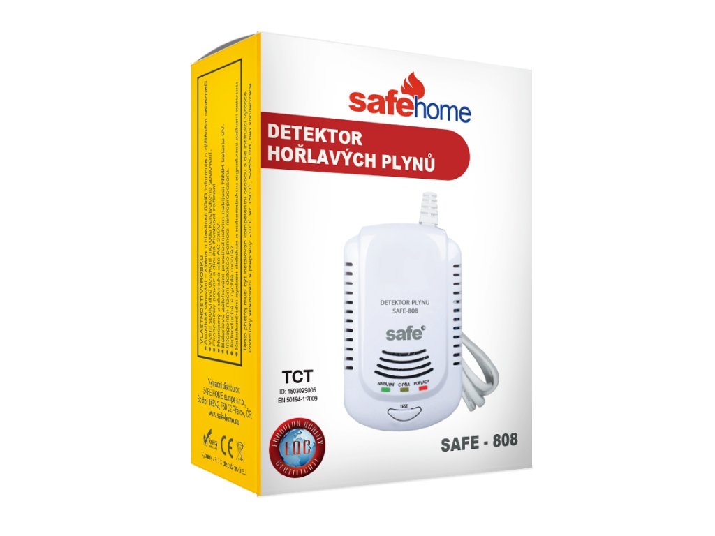 Hlásič plynu SAFE - 808 se ideálně hodí pro detekci úniku plynu ze všech domácích plynových spotřebičů a plynových kotlů. Detekuje všechny hořlavé plyny běžně se vyskytující v domácnostech.