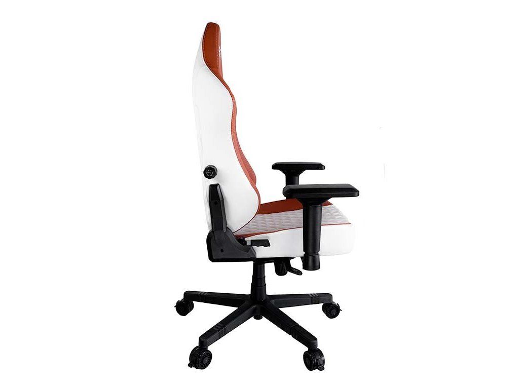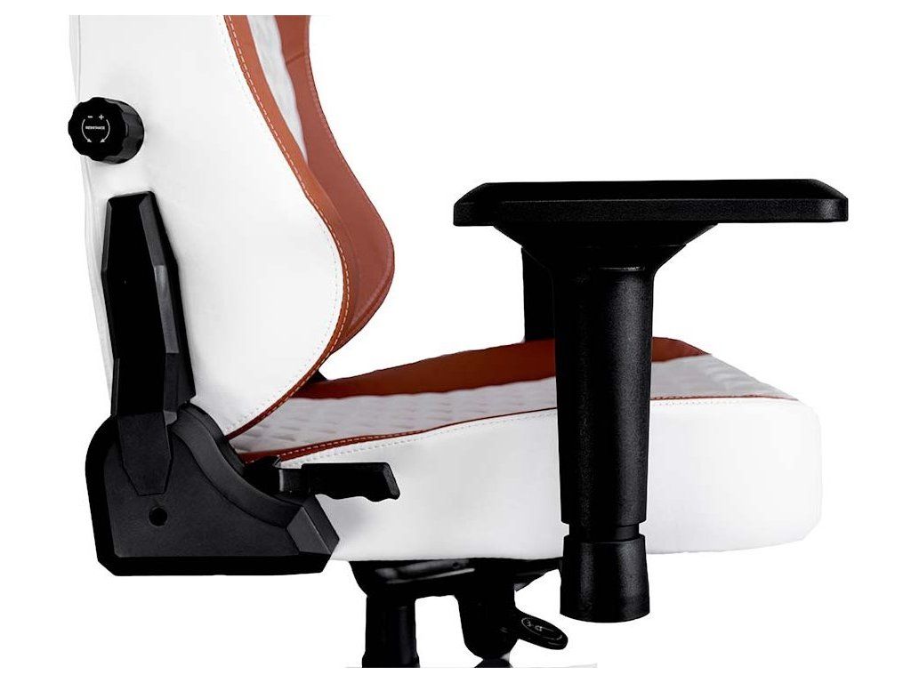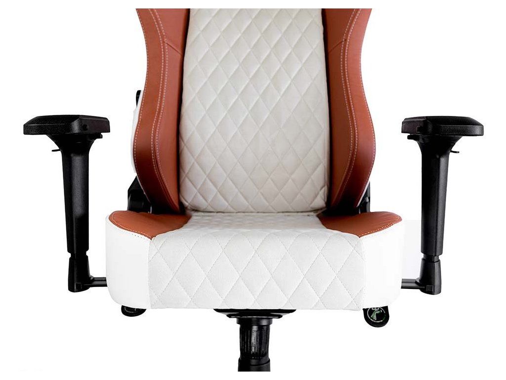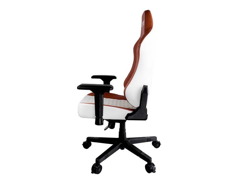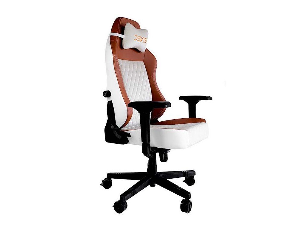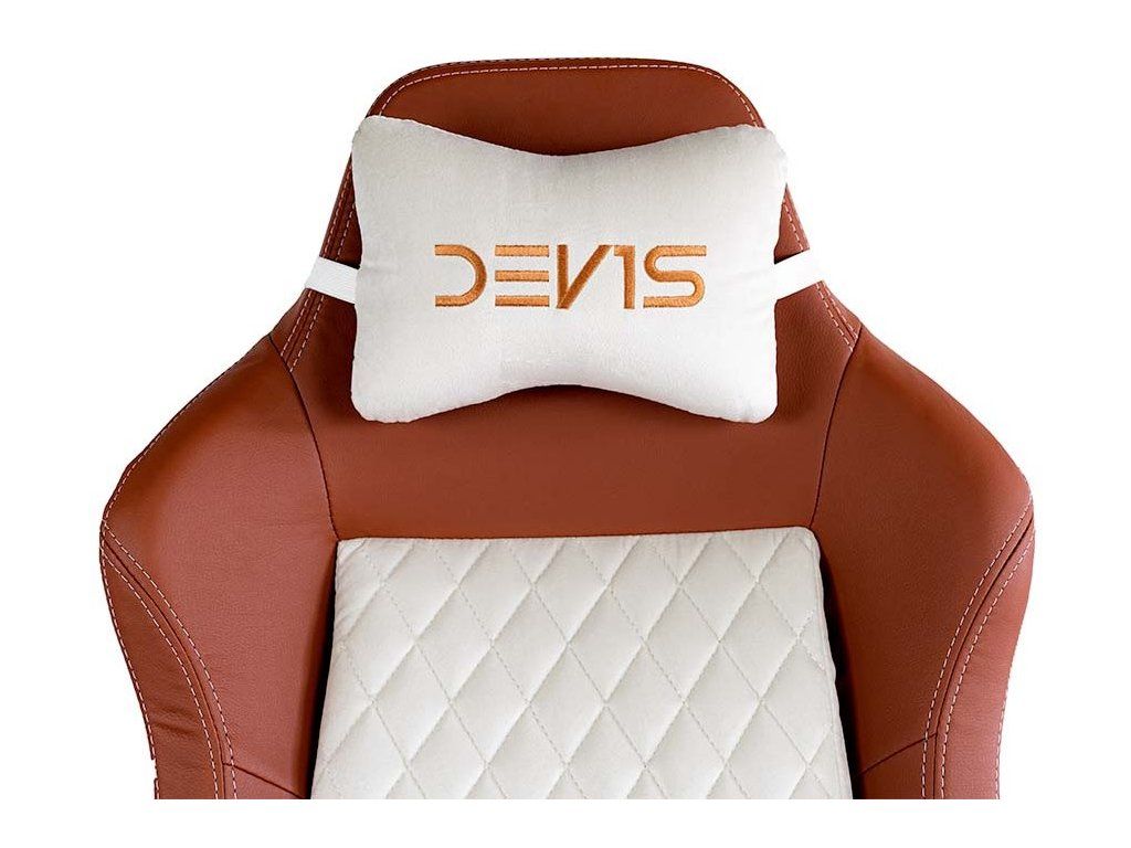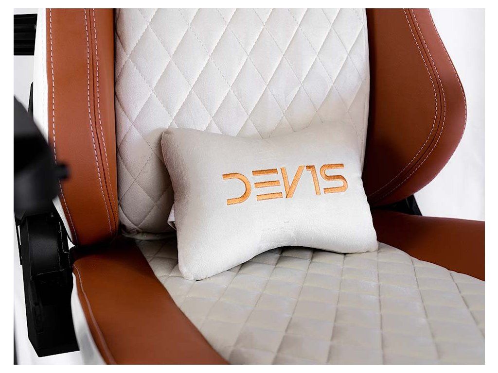 Herní židle DEV1S CREMA je kombinací luxusu a elegance, která uspokojí potřeby každého skutečného hráče. Broušená koženka připomíná luxusní sedadla nejdražších sportovních aut, zatímco ocelový rám zajistí mimořádnou stabilitu a odolnost. Nastavitelná výška sedáku, sklápěcí mechanismus a polohovatelná bederní a krční opěrka poskytují dobrou oporu a podporují správné držení těla, které potřebujete při dlouhém sezení u počítače. Zajisté potěší také zabrzditelná kolečka.