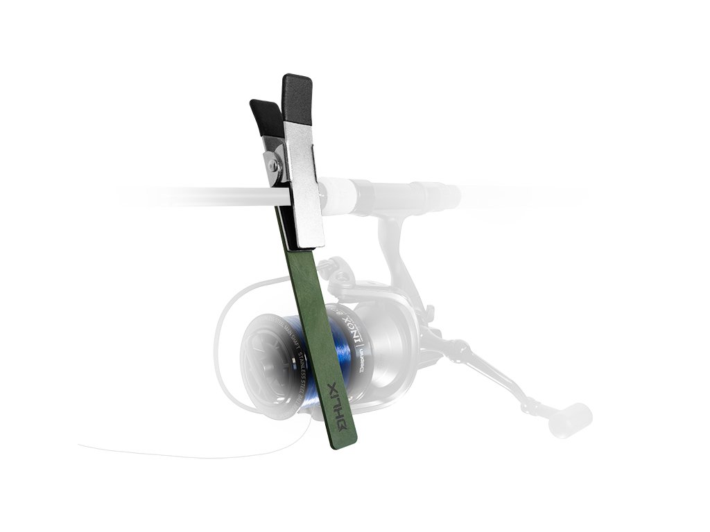 Držák vlasce umožňující pohodlné zavážení nástrah, ať už pomocí zavážecí loďky nebo člunu. Díky důmyslnému kolíčkovému provedení lze tento držák snadno upevnit k prutu, přičemž jeho delší rameno bude sahat až ke hraně cívky navijáku, čímž zamezí svévolnému vypadávání a motání vlasce. Jednoduše stačí upevnit držák, odklopit překlápěč navijáku a snadno vyvést vaši montáž na vytipované místo. Držák je vyroben z odolného kovového materiálu, což zaručuje jeho dlouhou životnost, přičemž část sloužící k upevnění na prut byla opatřena pěnou, aby nedocházelo k poškození blanku. Technické parametry: Celková délka držáku: 24cmDoplňkové parametry