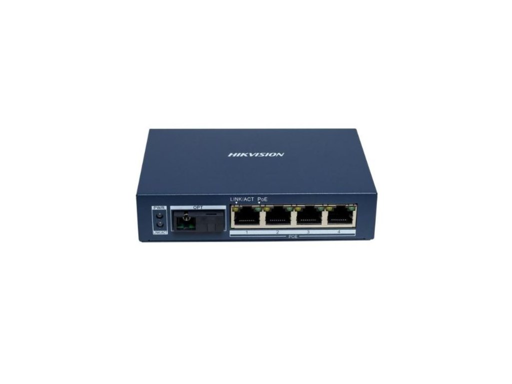 Hikvision DS-3D504TP-A - PoE mediakonvertor pro optický přenos, 4x 1000Mbps PoE porty/ 1 × 1000 Mbps SC optický port