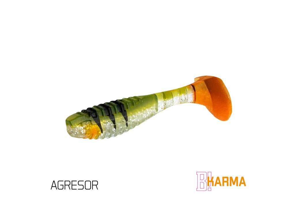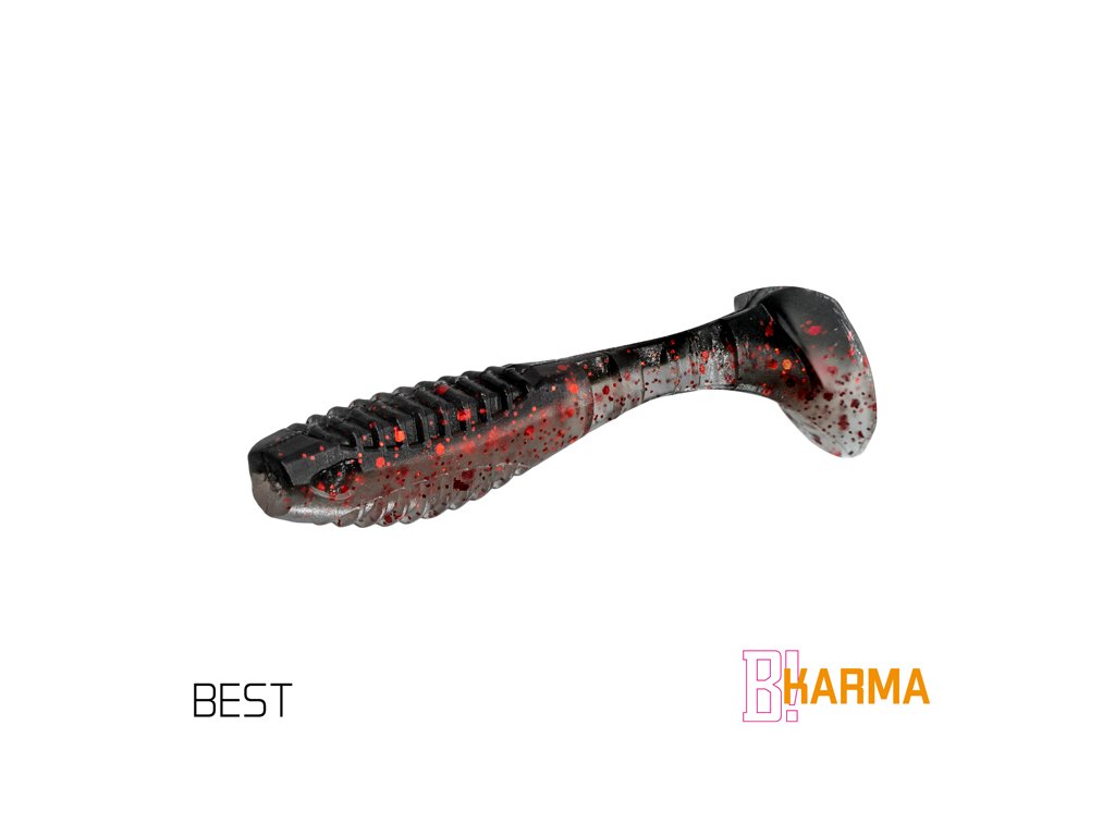 Design modelu KARMA jsme od počátku brali jako neklasické řešení klasického modelu. Cílem bylo vytvořit nástrahu se širokým záběrem použití, ale po našem. Již při prvním pohledu si můžete všimnout, že poměr velikosti těla k ocasu nástrahy je odlišný od běžného. Větší ocas nástrahy zapříčiňuje atypický pohyb nástrahy, který kromě kmitání ocasu přidává i jemné převalování tělíčka, což vytváří dojem zranitelného jedince. Tento pohyb je pro ryby nesmírně atraktivní a přináší vám nové možnosti v práci s nástrahou. Mezi spojením těla nástrahy a ocasu jsou vymodelovány tři zářezy, které dodávají chodu nástrahy uvěřitelnost. Samotné tělo nástrahy je na zádech a břiše opatřeno vroubkováním. Má to dva důvody. Prvním je zvětšení vibrací ve vodě. Druhým důvodem je usnadnění nastražení nástrahy na háček. Pomocí zářezů si můžete přesně vyměřit, kde bude háček z nástrahy vycházet. Proporční napíchnutí jigu je pak jednoduché. Přední část nástrahy v oblasti tlamy je upravena výřezem kvůli lepšímu dosednutí nástrahy k jigové hlavičce. Asi se ptáte, co vlastně znamená označení UVs. Jednotlivé barevné kombinace jsou totiž opatřeny UV barvami, které způsobují lepší odraz slunečního záření pod vodou, a tím pádem se nástrahy stávají nepřehlédnutelnými. Nezapomněli jsme ani na pachovou stopu, kterou pryžové nástrahy zanechávají ve vodě. Právě S symbolizuje, že nástrahy obsahují sůl a rybí aroma a jsou tak neodolatelným cílem predátorů. Provedení KARMA UVs nabízí širokou škálu těch nejúčinnějších barevných provedení, která byla vybrána na základě dlouhodobých testů na vodních plochách po celé Evropě. Balení DuoPACK Nástrahy jsou baleny v unikátním balení Delphin DuoPACK. To umožňuje samotné nástrahy prodávat buď zavěšené v blistrech jako celek, nebo jako kusovky z plnobarevného prezentéru! Samotný blistr DuoPACK obsahuje 5ks nástrah. Ucelené krabicové balení DuoPACK tvoří 6ks takových blistrů jedné barvy a délky. Hmotnost nástrahy: 10,5gDoplňkové parametry