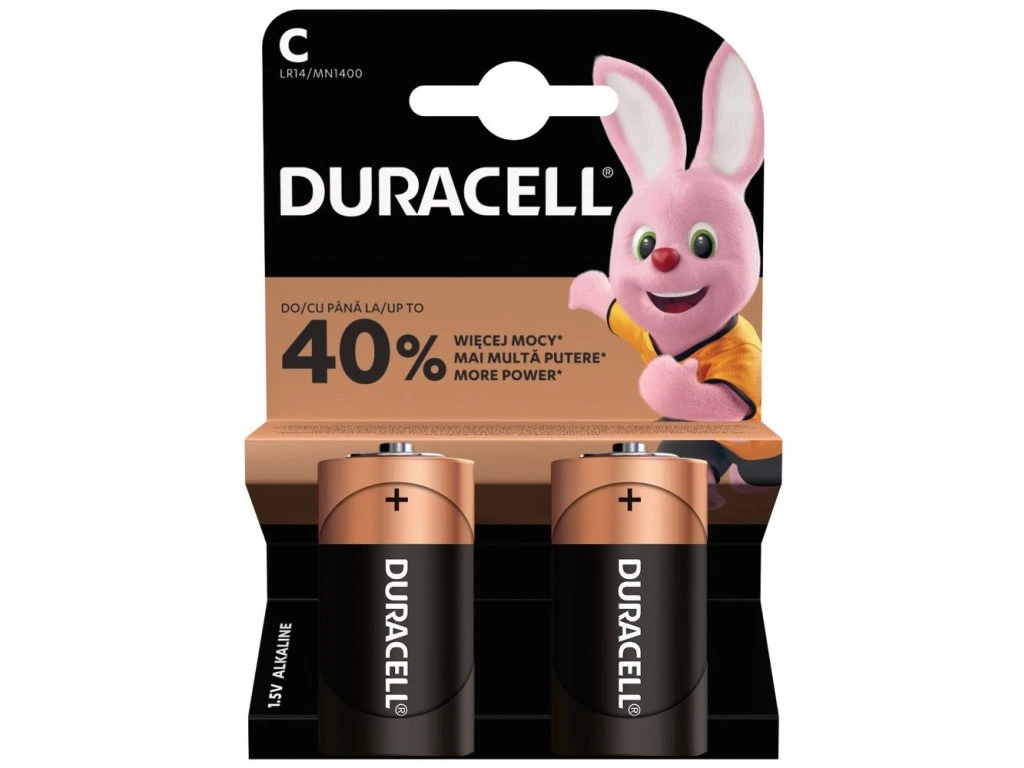 DURACELL Basic C 2 ksBaterie Duracell Basic jsou víceúčelové alkalické baterie vhodné pro běžné přístroje. Dokonalé uzavření horní části nylonem pomáhá předcházet vytečení baterií. Technologie Duralock udržuje nepoužívané baterie Duracell při běžném skladování jako nové a nabité po dobu až 10 let. Balení obsahuje 2 kusy baterií.