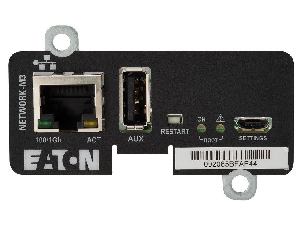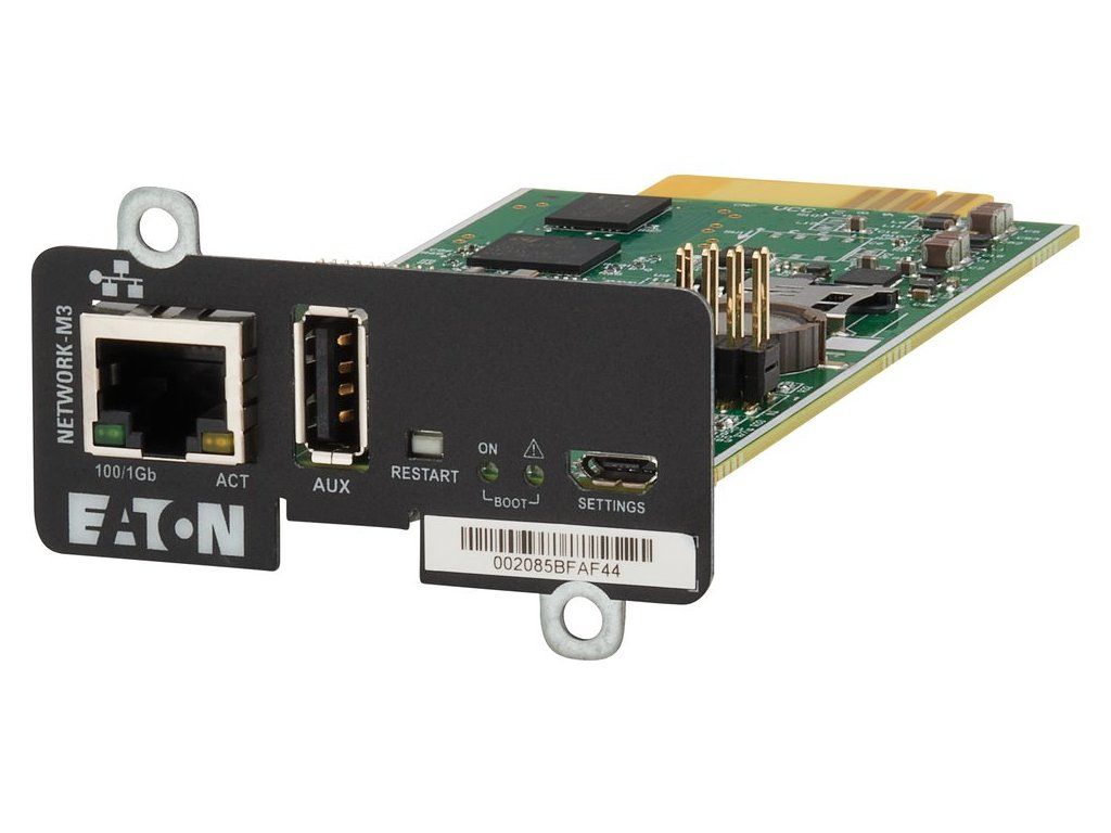 Eaton Network-M3Adaptéry Network-M3 s web/SNMP protokolem dovolují připojit vaší Eaton UPS přímo na Ethernet síť a na Internet. Toto jedinečné řešení vám umožní pohodlně monitorovat a spravovat vaší UPS pomocí standardního webového prohlížeče a při tom současně, v případě potřeby, postupně odstavovat počítačové systémy připojené na datovou síť.