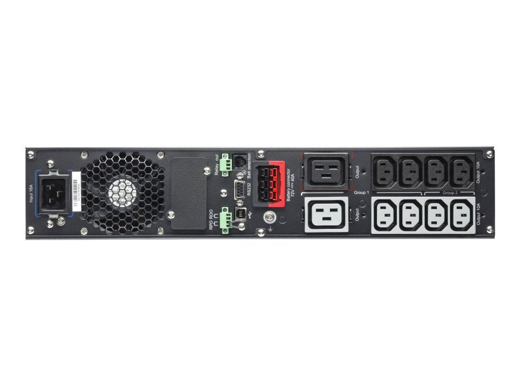 Výstupní zásuvky: 8× IEC-320-C13, 2× IEC-320-C19Tolerance výstupního napětí z baterie: -2 % až +2 %
