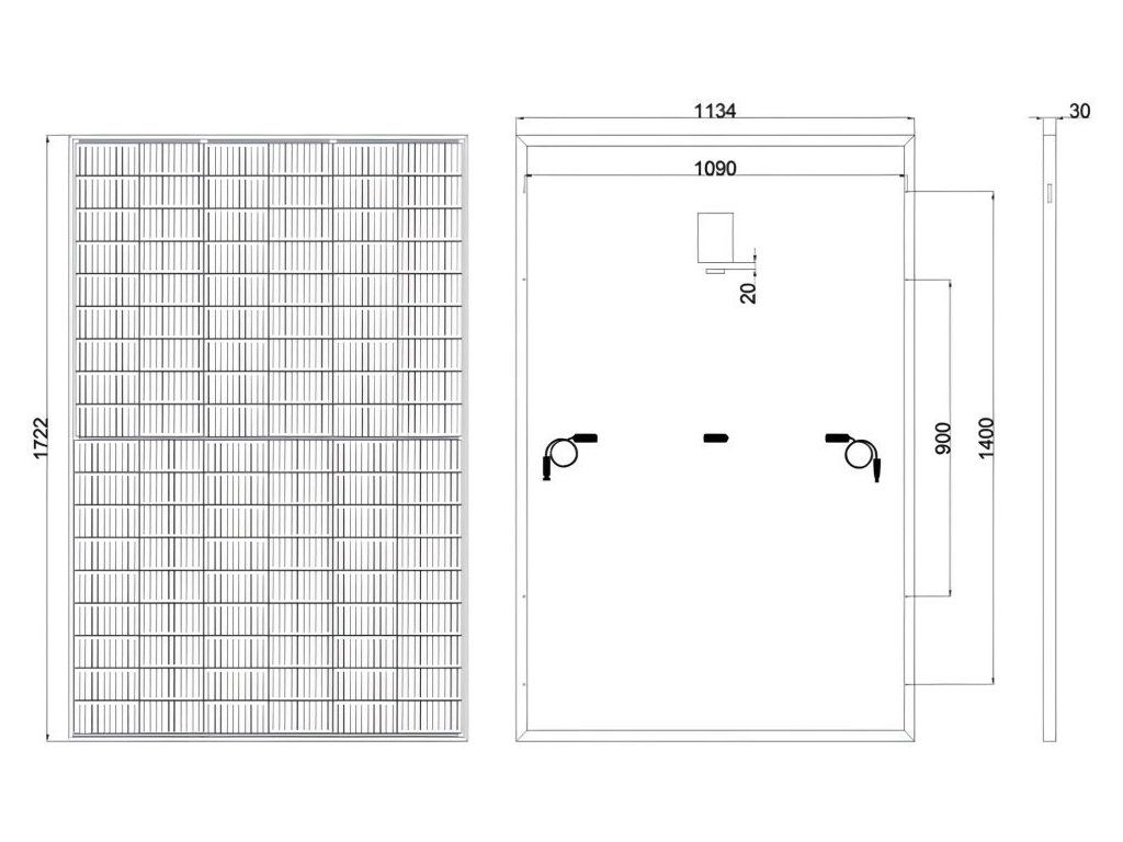 Tyto panely mají 108 článků v celočerném hliníkovém pevném rámu. Je vybaven speciálním mechanicky odolným tvrzeným sklem s vysokou schopností průchodu světelného záření.