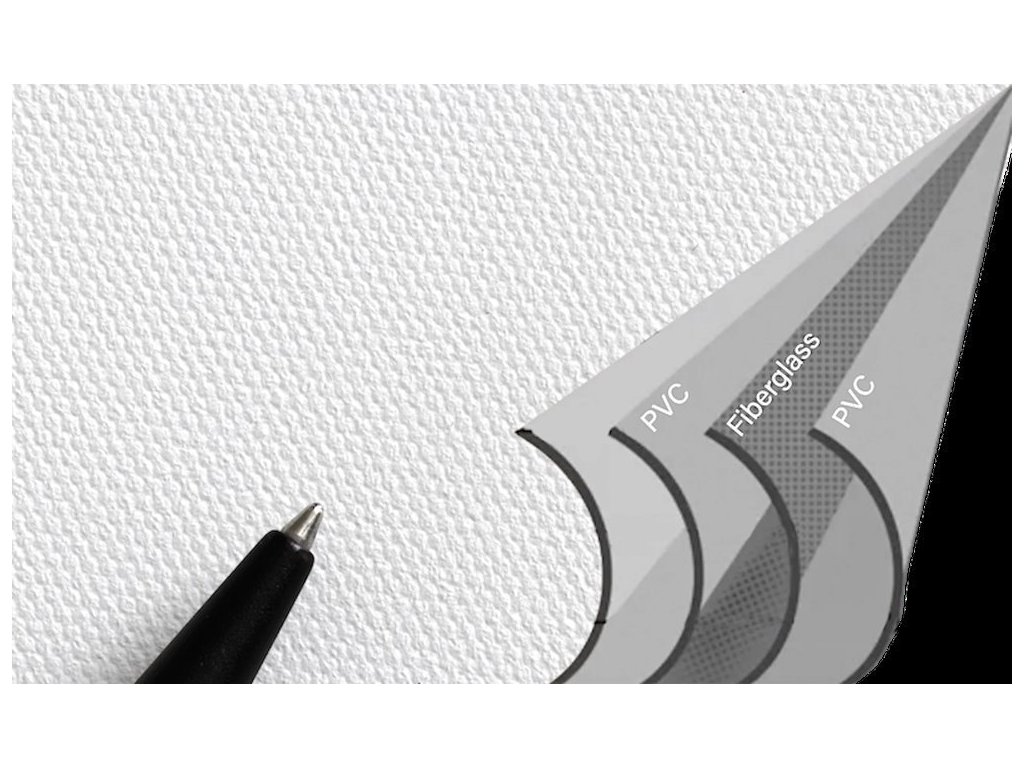 - MaxWhite FG (FiberGlass) - odolný a snadno se čistící materiál, podklad ze skelných vláken pro lepší rovinnost, Gain 1.1