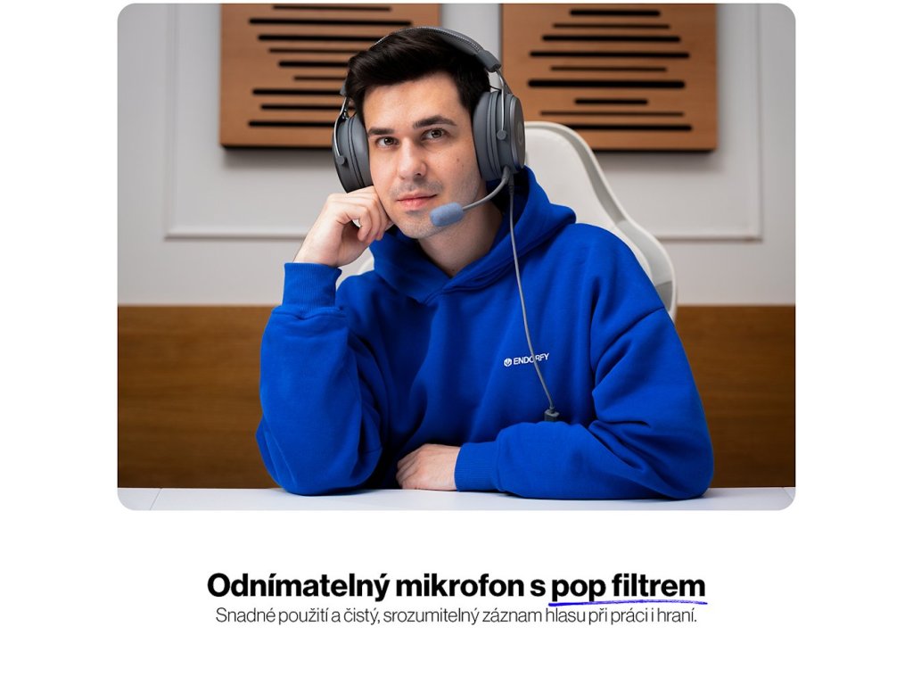 - Odnímatelný mikrofon s pop filtrem a potlačením šumu pro čistou komunikaci