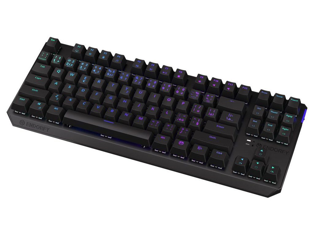 Endorfy Thock TKL Wireless RedBezdrátová mechanická herní klávesnice je vybavena spínači Kailh Red s perfektní odezvou a životností až 70 milionů stisků. Klávesy jsou ARGB podsvícené a nabízí možnost vlastního nastavení. Klávesy jsou navíc také plně programovatelné, díky tomu lze klávesnici individualizovat přesně podle potřeb hráče a hrané hry. Samozřejmě nechybí ani funkce Anti-Ghosting a N-Key rollover. Připojení k počítači lze realizovat jak bezdrátově skrze Bluetooth či miniaturní USB přijímač a technologii 2,4 GHz, tak i drátově pomocí USB kabelu, který slouží zároveň pro nabíjení.
