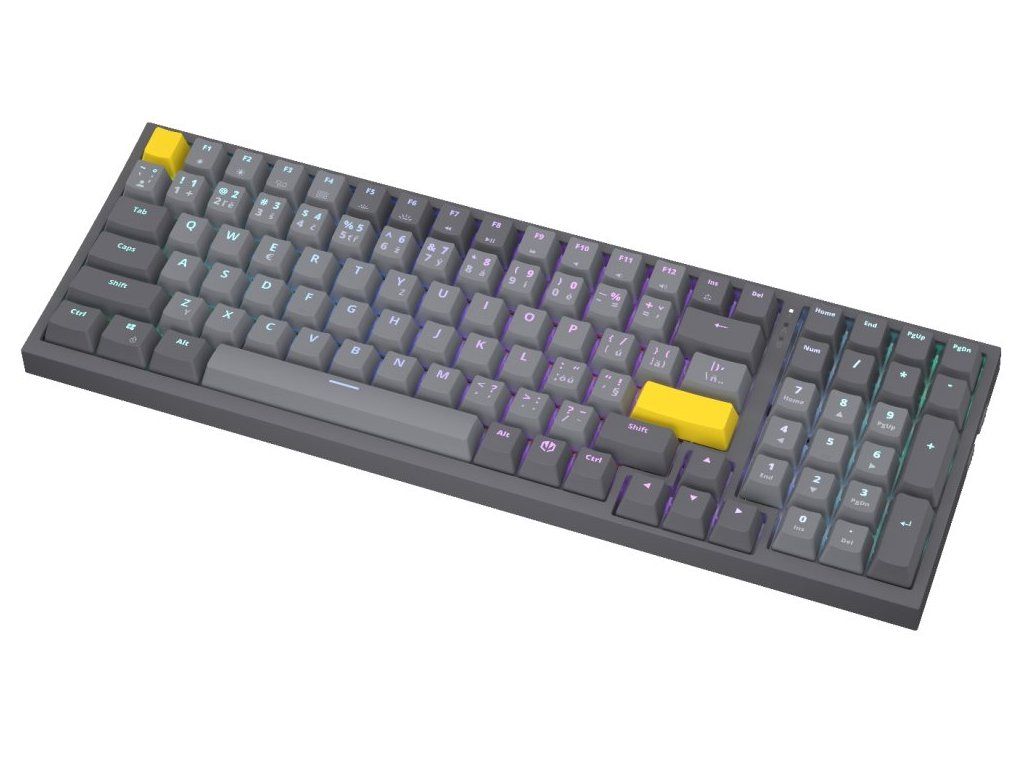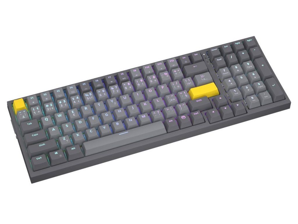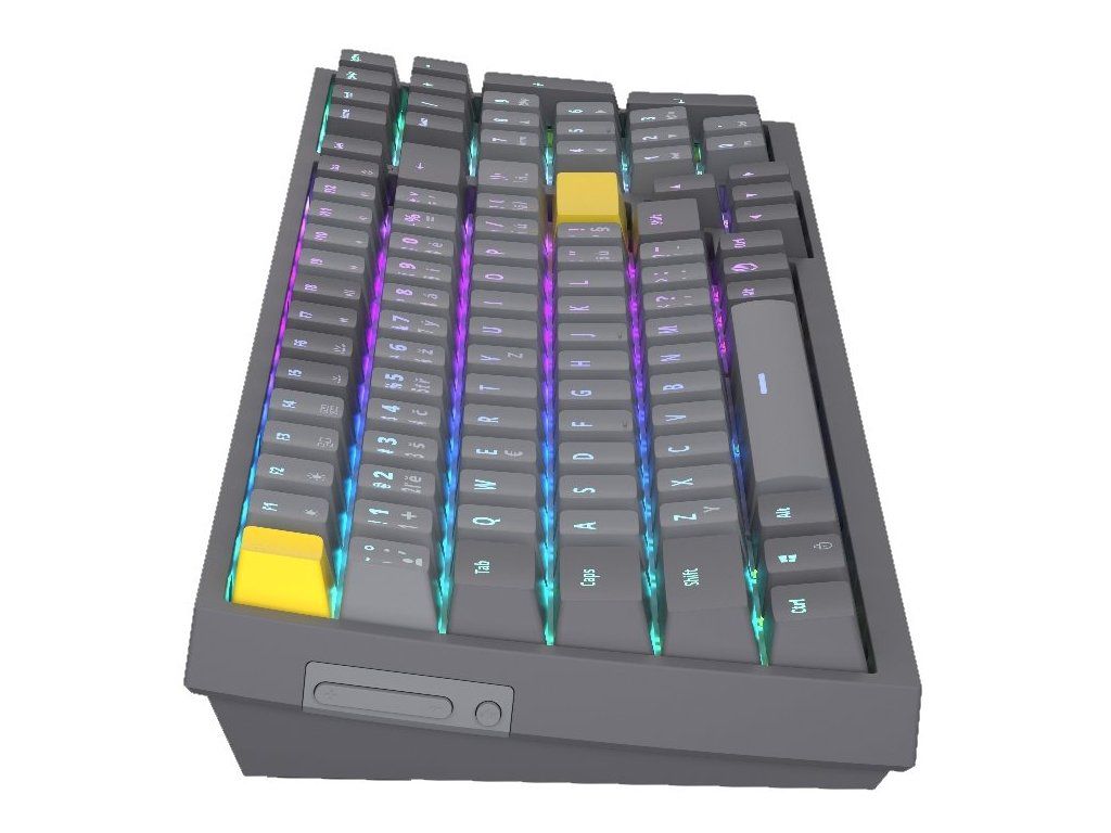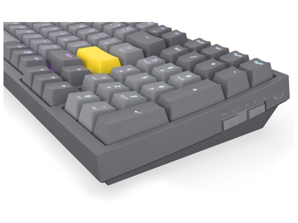 Moderní mechanická klávesnice navržená pro uživatele, kteří hledají dokonalou kombinaci kompaktního designu, pohodlí a technické preciznosti. Díky univerzálnímu rozložení typu 1800 s plnohodnotným numerickým blokem poskytuje veškeré funkce klasické klávesnice, a přitom šetří místo na stole. Kompatibilita se systémy Windows, macOS, Linux i Android umožňuje flexibilní využití napříč zařízeními, přičemž přepínání mezi nimi je otázkou sekund díky podpoře Bluetooth, 2,4GHz donglu a USB připojení. Výkonná baterie vydrží na jedno nabití až 120 hodin provozu, což zajišťuje dlouhodobé používání bez nutnosti častého dobíjení.