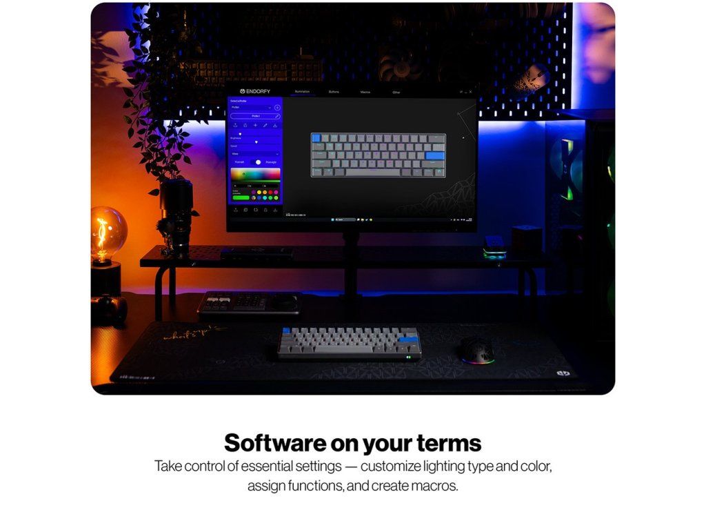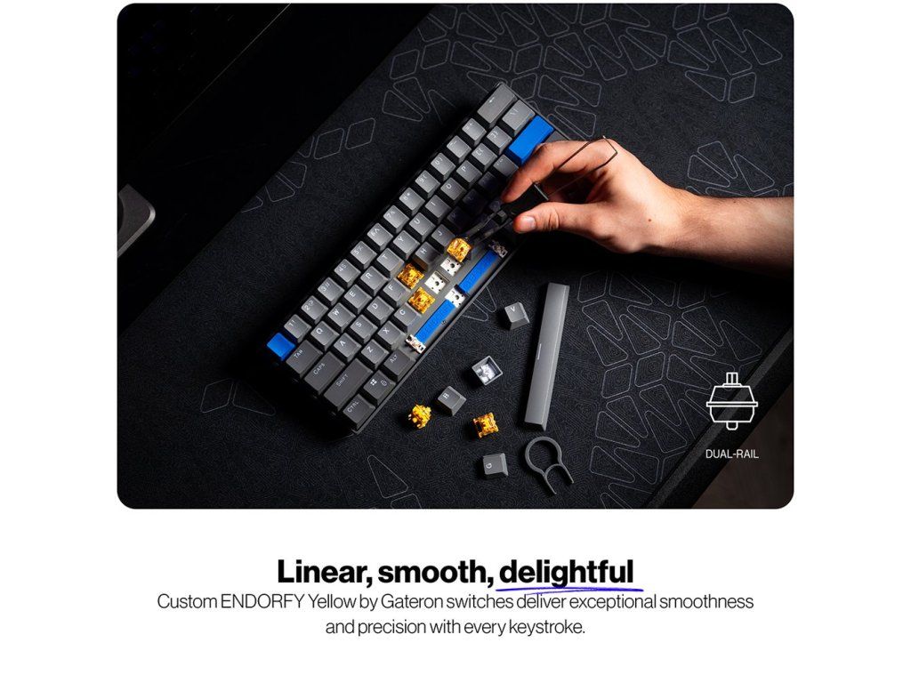 Bezdrátová mechanická klávesnice s kompaktním 60% layoutem a exkluzivními Endorfy Yellow spínači.