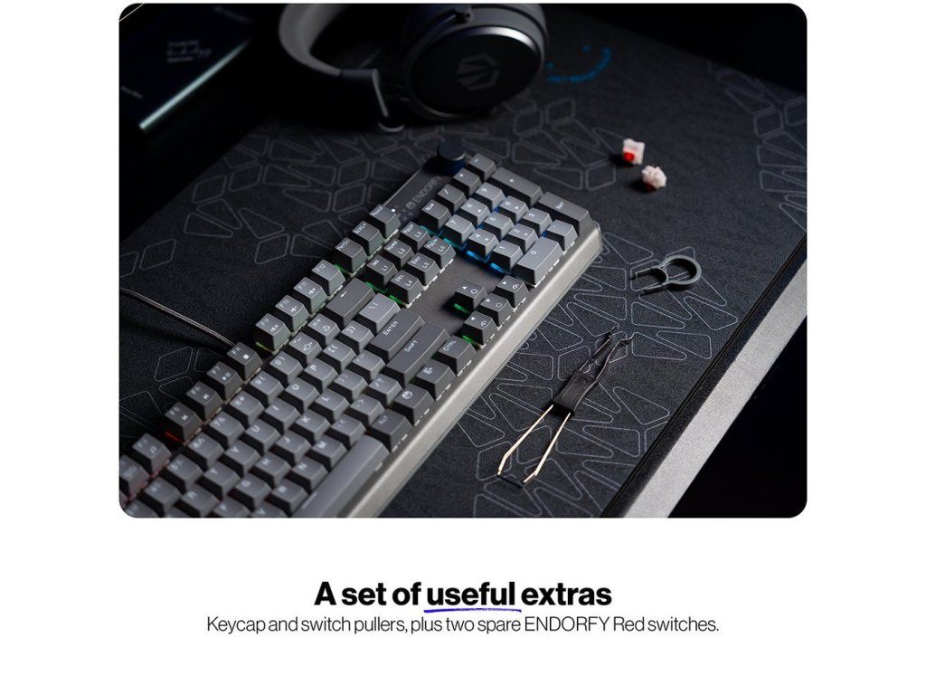- Exkluzivní lineární mechanické spínače Endorfy Red s továrním předlubrikováním