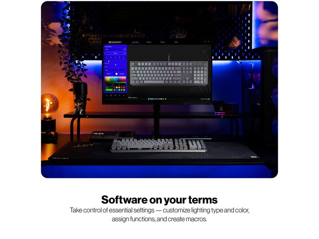 Dedikovaný software pro Windows 10 a novější poskytuje úplnou kontrolu nad klávesnicí – od přizpůsobení typu a barvy podsvícení až po přemapování kláves a tvorbu maker podle vašich potřeb.