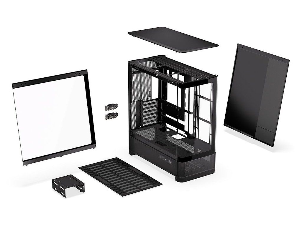 - Optimalizovaný airflow s větší plochou perforace, mesh panely a podporou až 10× 120mm ventilátorů