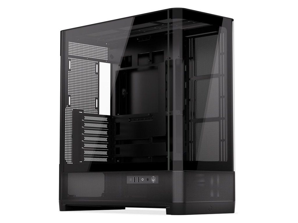 Prémiová showcase skříň s panoramatickým designem a vysokou kompatibilitou pro výkonné sestavy.