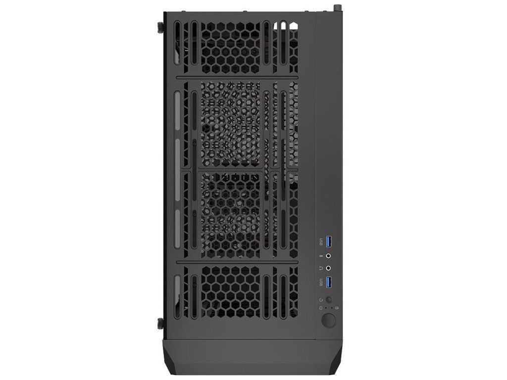 Konektory na horním panelu: 2× USB 3.0, 1× sluchátkový výstup, 1× vstup pro mikrofon